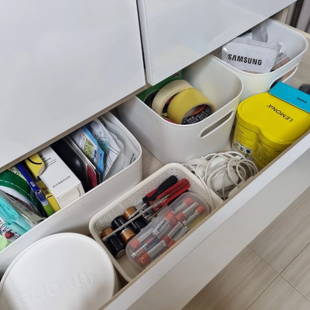 서랍정리에서 중요한 것은 한 번에 정리하면 좋다는 것인데요. 사실 알면서도 한 장소에 모아서 정리하기는 쉽지가 않습니다.