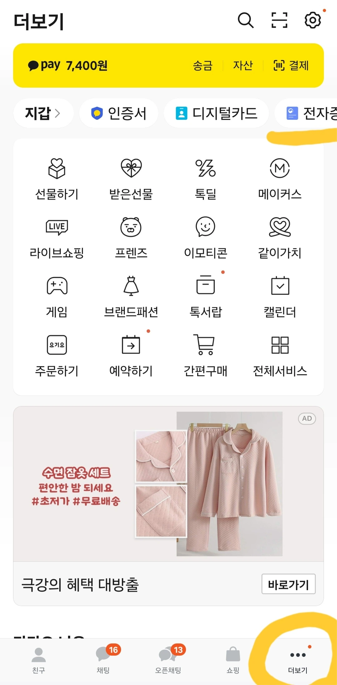 카카오톡에 들어가서 점 세 개 더 보기를 누르면 지갑에 '전자증명서'가 있다. 전자증명서를 누르면 이렇게나 많은 문서들을 카톡으로 받아 볼 수 있다.