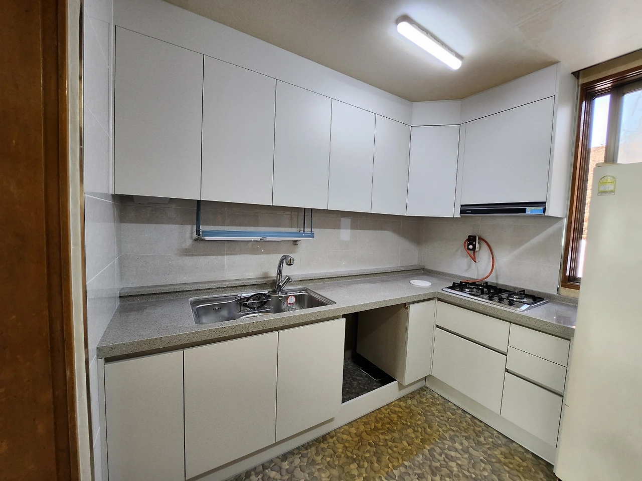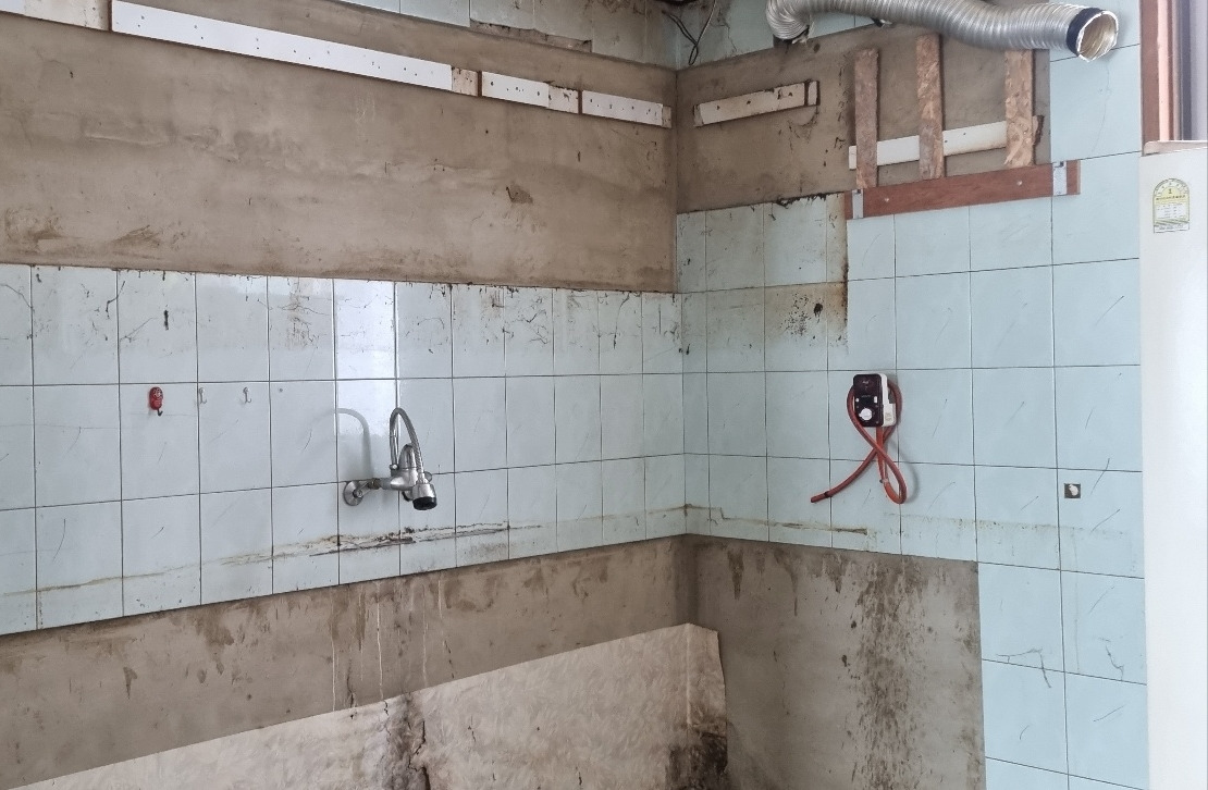 하지만 식세기를 놓으려고 보니, 26년 전 싱크대는 규격장도 아니고 심지어는 문짝이 하나 뚝 떨어져 있다. 부엌 타일도 26년 전에 시공한 그대로이다.