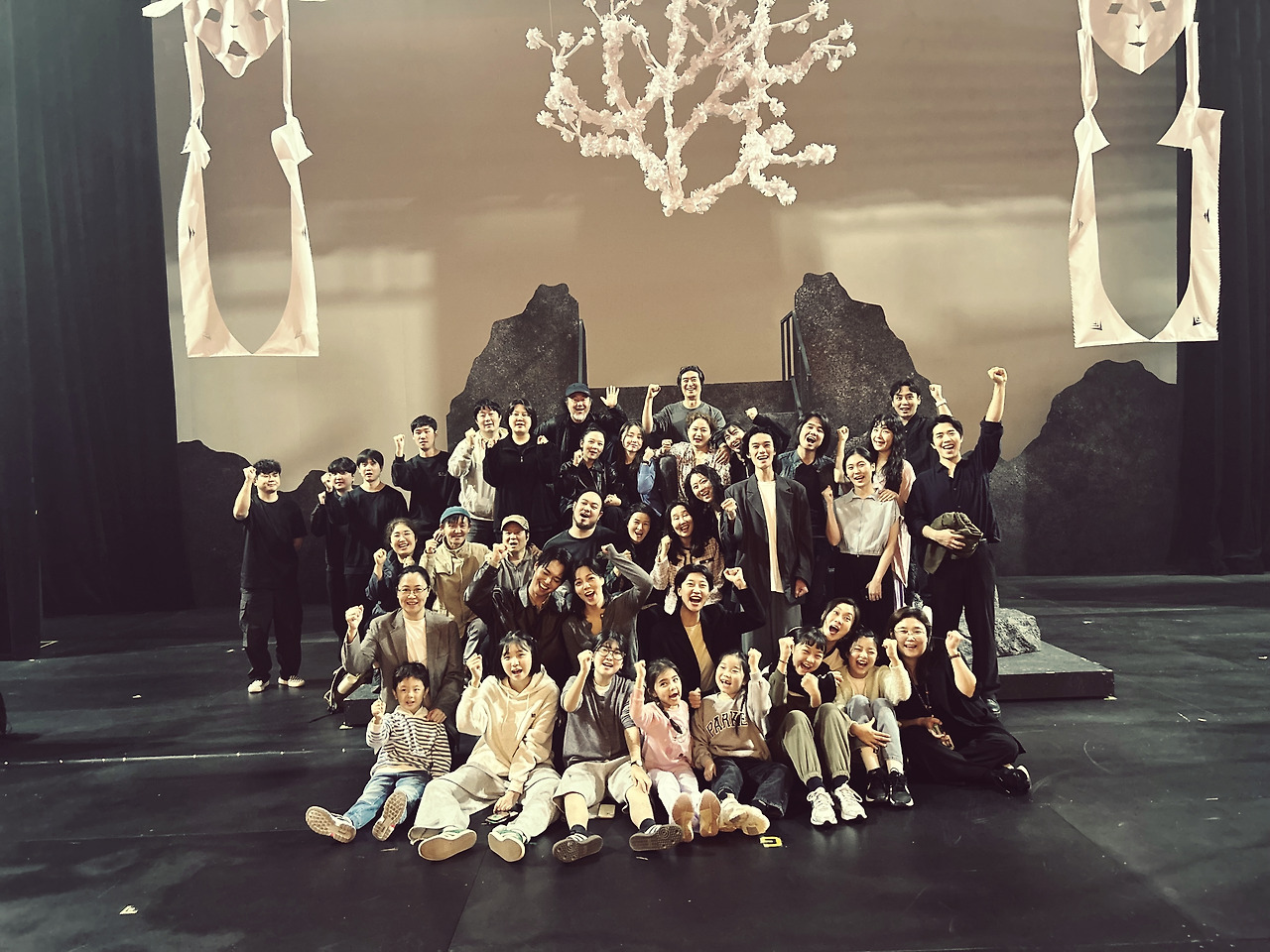 뒤늦게 단체사진도 못 찍었다는 사실을 알게 되어 무대를 한 번 더 열게 되었습니다. 잠깐 사직을 찍기 위해 모든 배우와 스텝들이 무대 위에 올랐습니다.