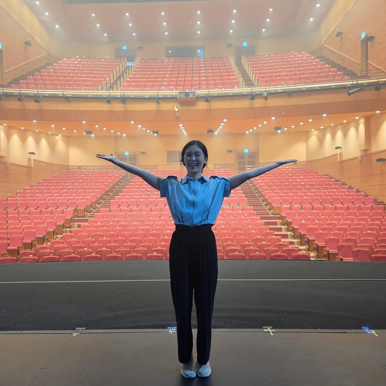 마지막으로 빈 객석을 배경으로 사진을 찍었습니다. 선생님은 너무 흔한 사진이라고 말하셨지만 저에게는 특별한 사진입니다. 언제 또 이렇게 큰 무대에 설 수 있을지 모르기 때문입니다.