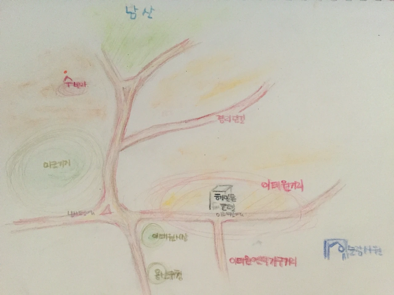 웨이트리스는 주문과 함께 메뉴판을 가져간다. 어둠이 내린 이태원의 풍경은 붉은 벽돌로 올린 빌라들이 엮은 토양 같다. 마치 물을 주고 양분을 뿌리면 남산타워만큼 쑥쑥 자랄 느낌, 번쩍이는 전광판 너머의 화려한 클럽 안으로 수많은 헐벗은 영혼들은 빨려 들어간다.