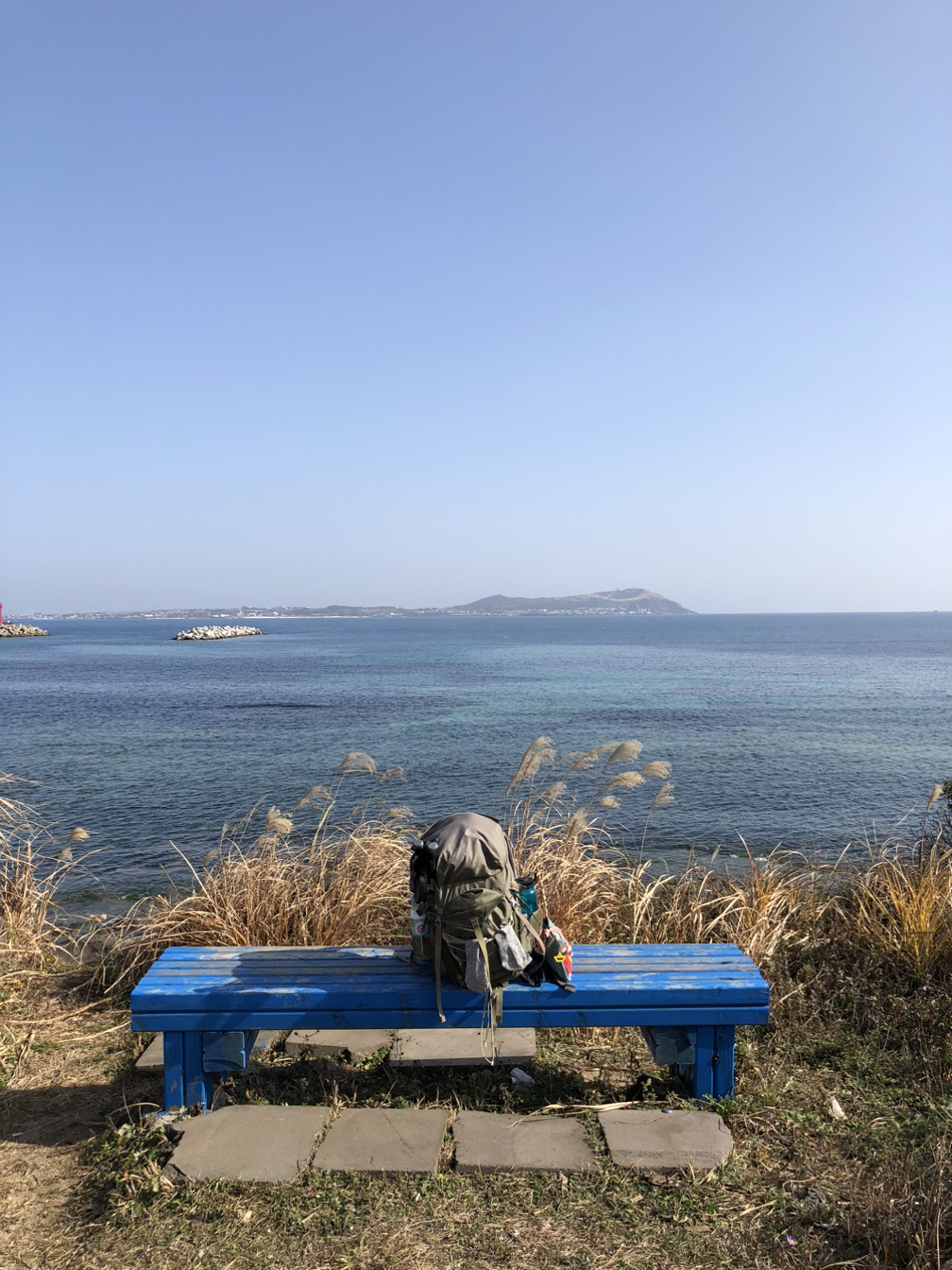 첫 숙소를 이곳에 잡길 잘했다. 오름을 인기 순위대로 오르는 것도, 올레길을 1코스부터 차례로 걷는 것도 이번 여정의 목표는 아니었다. 그저 해안도로를 따라 걸을 수 있으면 충분했다. 올레길 가까운 곳 어디든 괜찮다는 마음으로 잡은 숙소가 바로 제주해녀박물관 건너편. 해녀박물관은 올레길 21코스의 시작점이다. 오전 8시 반, 배낭 제일 위, 손 닿기 좋은 곳에 접이식 방석을 챙겨 넣는다. 틈날 때마다 주저앉고, 숨 쉬듯 멈춰 서고, 누구보다 천천히 걷기로 한다. 얇은 패딩 점퍼를 걸쳐 입고 귀도리 모자를 눌러쓴다. 바람 때문일까, 낯섦 때문일까. 제주 공기는 아직 차다.