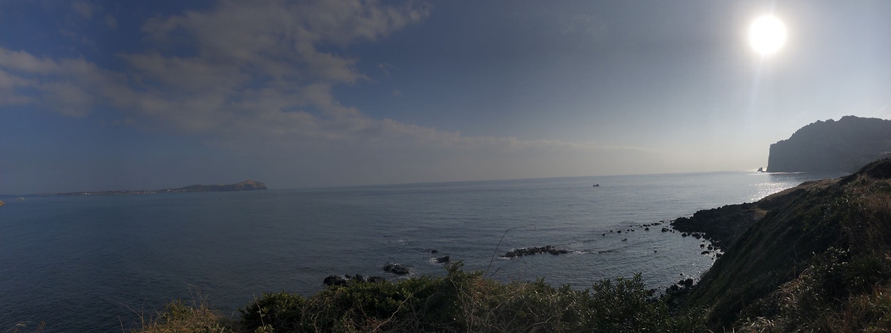 광치기해변에 9시 반까지 도착해야 쇠소깍에서 11시에 만나기로 한 찌니와의 약속을 지킬 수 있다. 하지만 도심 올레길을 걸으면서 네 명과 카톡으로 소통하고, 한 사람과는 다소 긴 전화 통화를 하기는 쉽지 않다. 결국 성산항을 마주하고 벤치에 주저앉는다. 넋두리를 늘어놓을 수 있는 대상과 정신을 똑바로 차려 상황을 파악해야 할 대상이 있다. 이 길 위에서 조차 이런 분별심을 발휘해야 하는 내 처지가 억울하다. 두고두고 억울하다. 억울한 마음이 지금 내 등에 짊어지고 있는 9킬로그램짜리 배낭보다도 더 묵직하다. 시간은 지체됐고 갈 길은 멀다. 서둘러야 해서 또 억울하다. 성산항을 뒤로하고 언덕을 오르면 멈춰 서서 깊게 숨을 내쉬어야 할 풍광을 만나게 된다. 그러나 이 바다와 하늘과 햇살 아래에서 조차 내쳐 가던 길을 가려고만 할 만큼 나는 어리석다. 그게 또 억울하다.