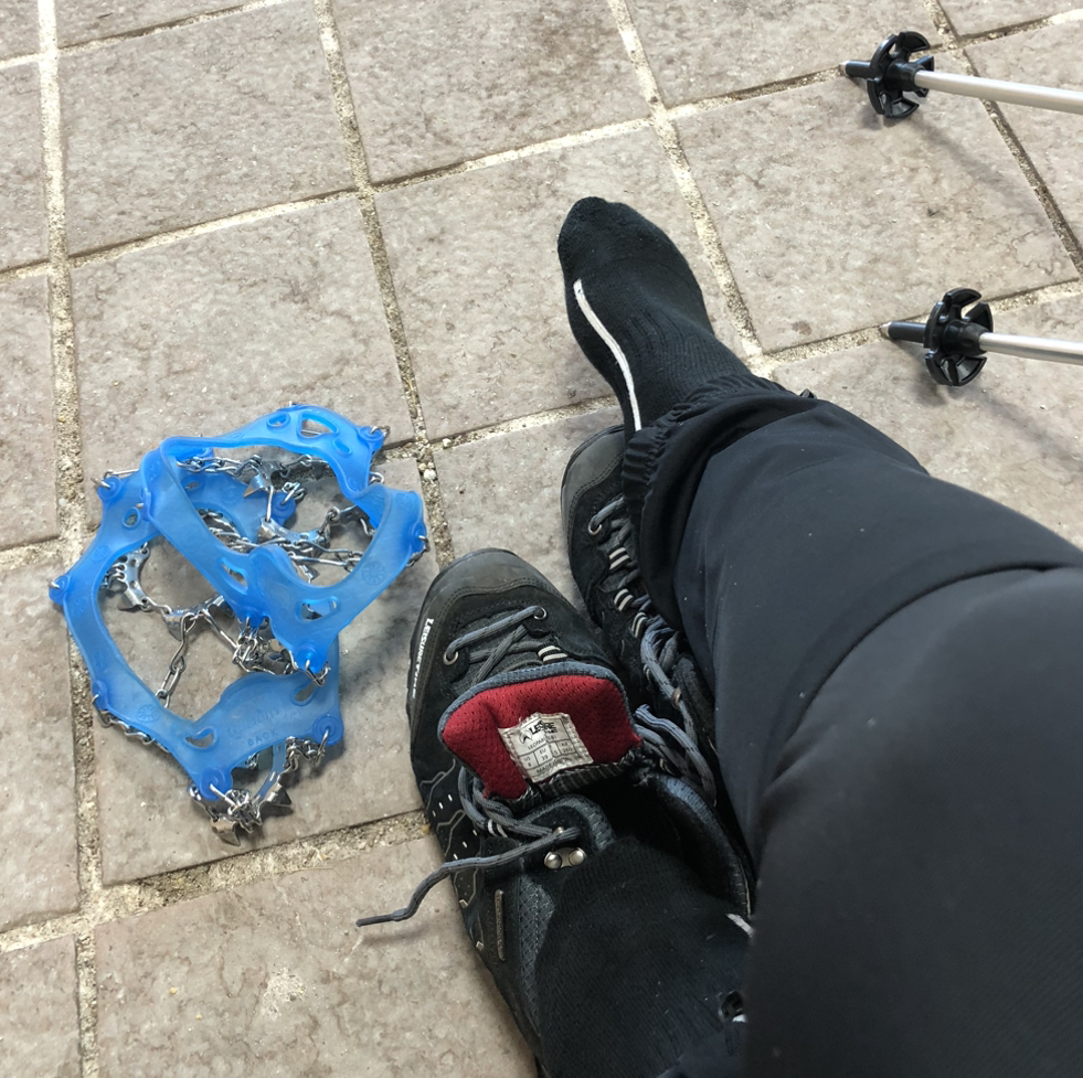 탐방로 입구에 도착하니 주차장은 이미 만차고, 여기저기에 아이젠과 스패츠를 착용하는 사람들 무리가 보여. 나는 간이 방석을 꺼내 일부러 털썩 주저앉았어. 아이젠을 낄 때도 스틱을 쭉 잡아 뺄 때도 손아귀에 힘을 줬지. 정말 오랜만의 겨울 산행이라 사실 조금 긴장 돼. 이럴 때 필요한 건, 가볍고 짧은 호흡, 후!
