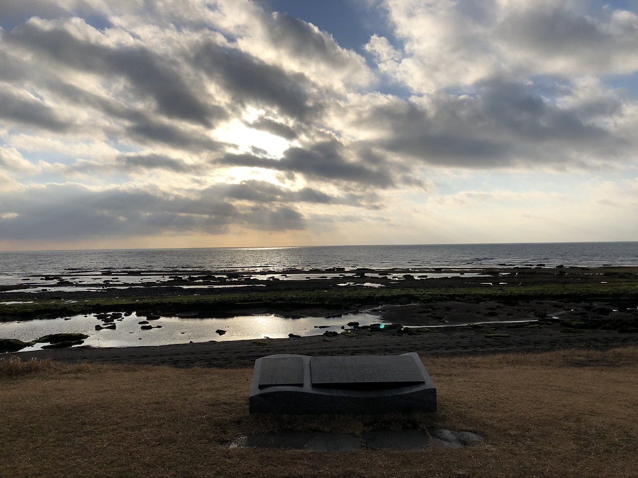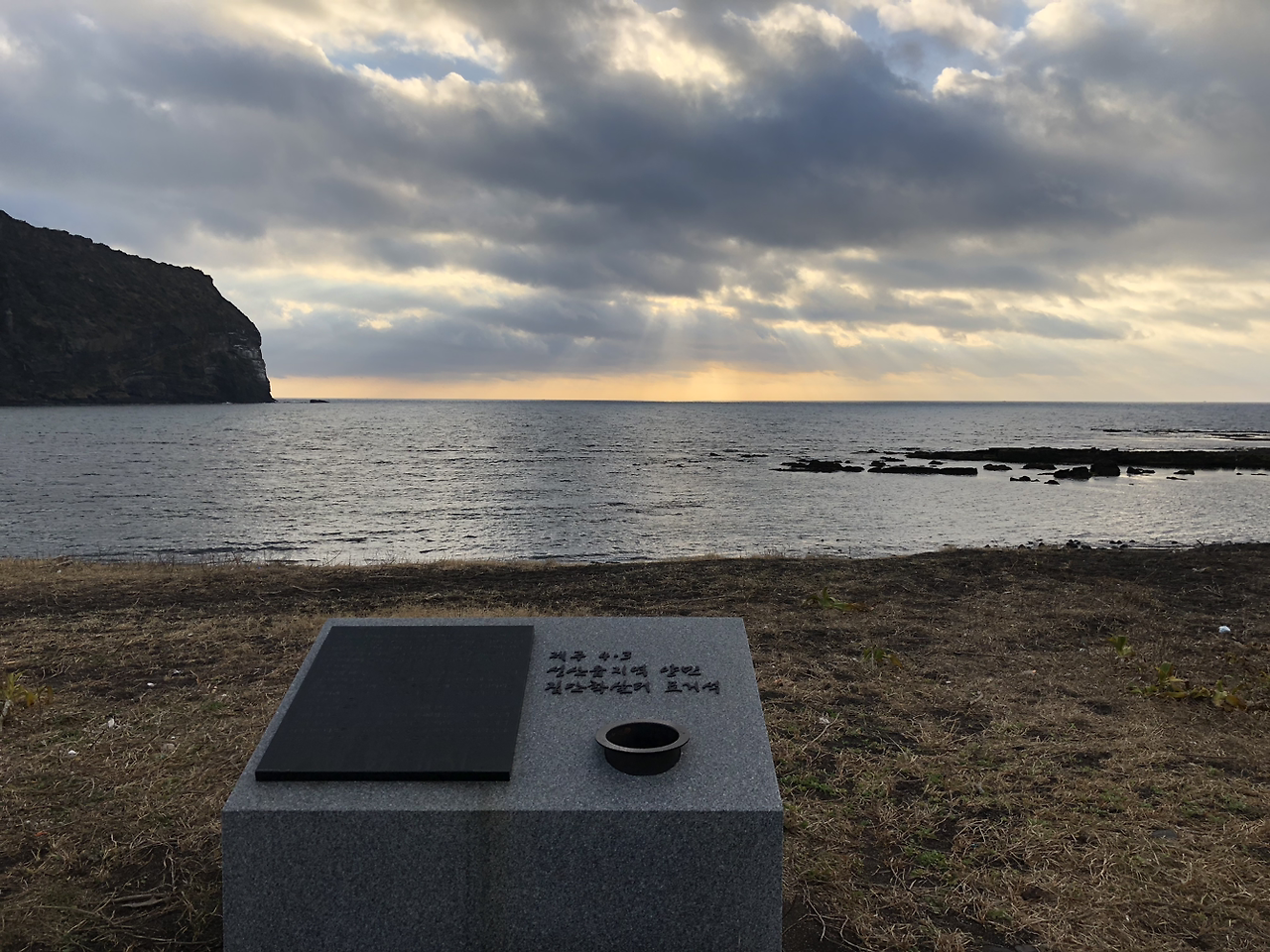 성산일출봉에서 내려와 다시 숙소로 돌아오는 길, 광치기 해변에 들렀어. 4.3 사건의 유적지인 터진목에서 바라본 풍광은 너무나 아름다워 기이했지. 참 다행스러웠던 건 하늘도 바다도 햇살 속에 부서지며 더 너그러워지고 있었다는 거야. 해랑이가 지닌 따뜻함, 주위를 살피는 사려 깊음, 그건 아마도 해뜨기 전의 고요와 해 뜨는 순간의 열기를 감당해 낸 이 시간을 닮아 있는 건 아닐까.