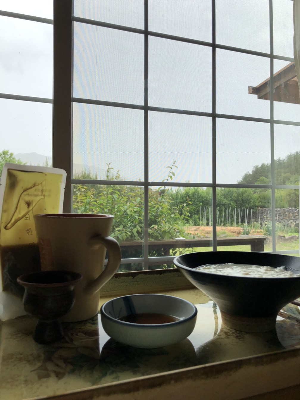어제 올해 첫 콩국수를 먹었다. 엄마가 부지런히 콩껍질을 깐 덕분이다. 메주콩을 한나절 불린다. 날이 더워 반나절 만에 콩은 제법 몸을 불렸다. 콩이 잠길 만큼 물을 붓고 냄비 뚜껑을 덮은 채로 끓인다. 딴짓은 금물이다. 콩물이 홀라당 넘쳐 오르면 레인지가 더러워지는 건 물론이고 고소한 콩맛도 사라져 버린다. 냄비 뚜껑이 들썩거리기 시작하면 바로 불을 줄이고 뜸 들이듯 조금 더 익힌다. 5~10분 후에 불을 끄고 한나절 그대로 둔다. 다음날 소금 간을 하면서 믹서에 곱게 간다. 콩 삶은 물은 버리지 않고 콩을 갈 때 쓴다. 콩국수 끓여 먹고 남은 콩물은 오늘 엄마의 아침 식탁에 올랐다. 식은 밥에 콩물과 맹물을 반반씩 섞고 눌어붙지 않도록 저어준다. 끓어오르면 불을 줄이고 밥알이 퍼질 때까지 가끔씩 저으면서 살핀다.