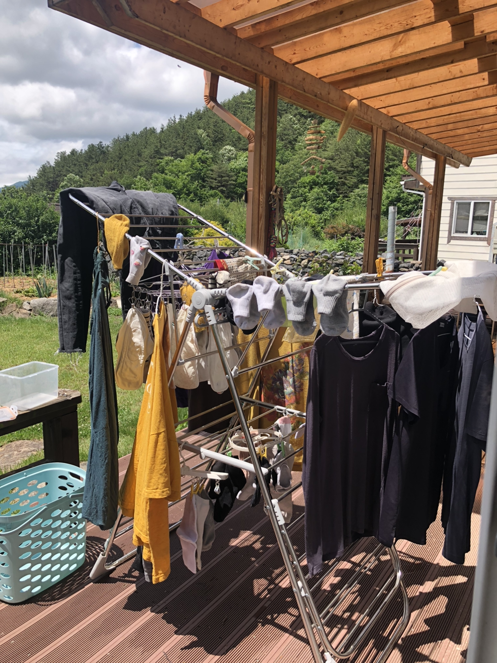 "엄마, 예술작품하는 게 목적이 아니야. 그냥 널어."