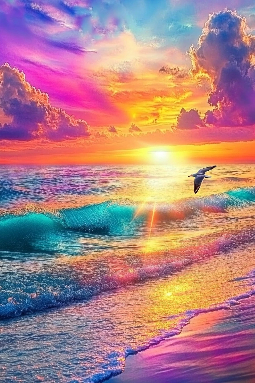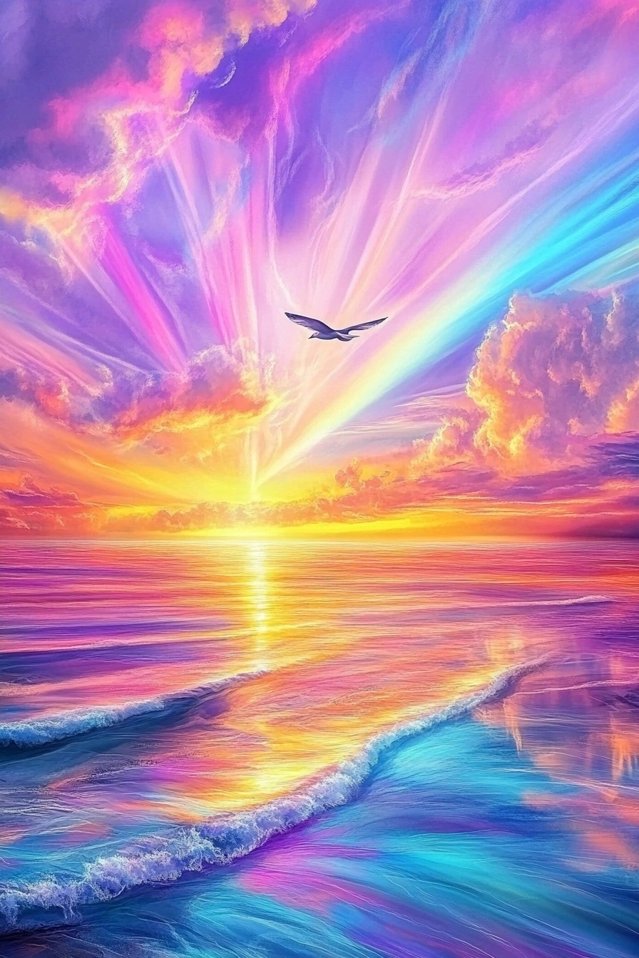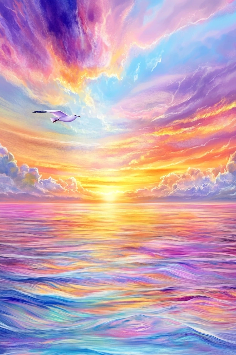 예를 들어, 황홀한 일몰 풍경을 미드저니에 요청하면, 그것은 단순한 해넘이가 아니라, 마치 신비로운 동화 속 한 장면처럼 탄생한다. 하늘은 불타는 듯한 주홍빛과 보랏빛으로 물들고, 바다는 금빛 잔물결을 그리며 잔잔히 춤춘다. 저 멀리, 한 마리 갈매기가 태양을 향해 날아가는 모습이 한 폭의 그림처럼 선명하다.