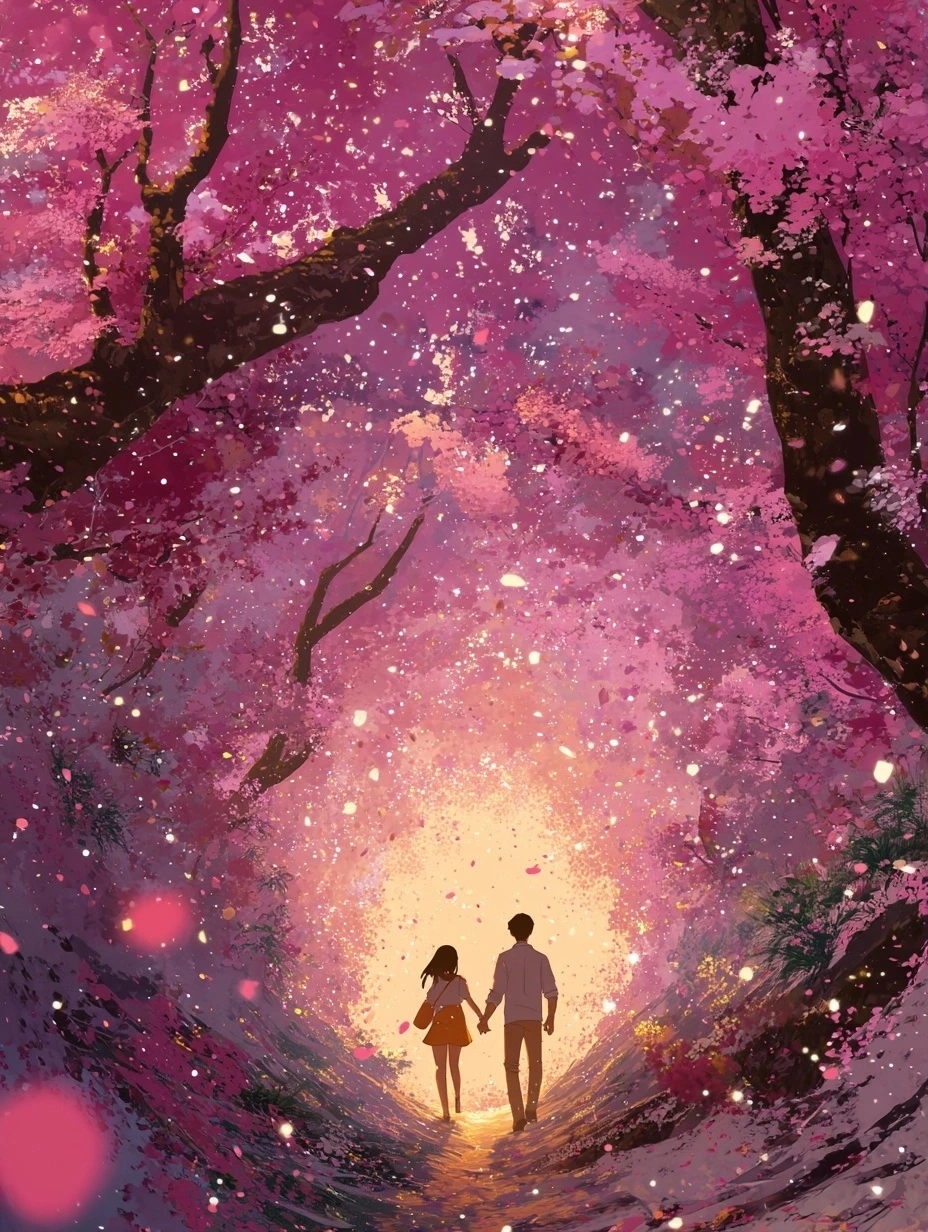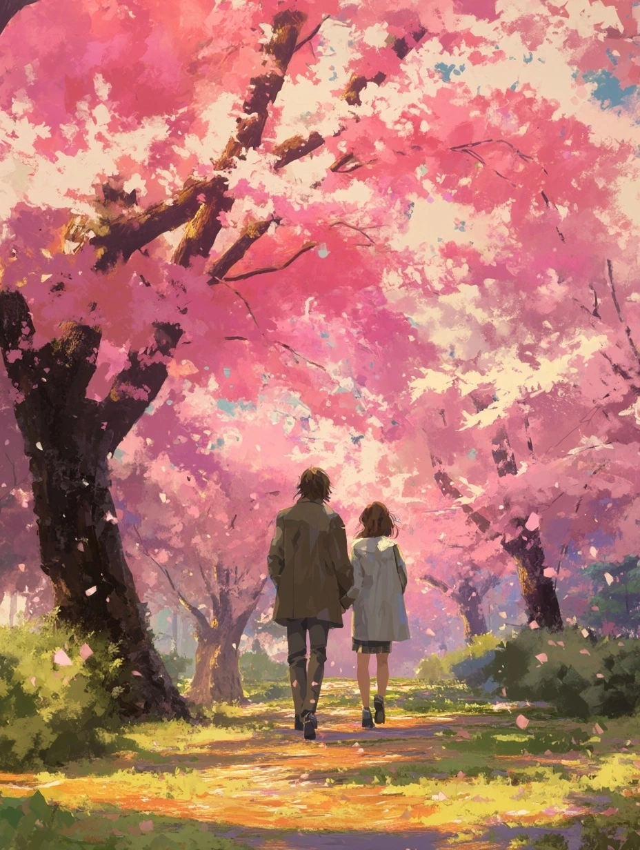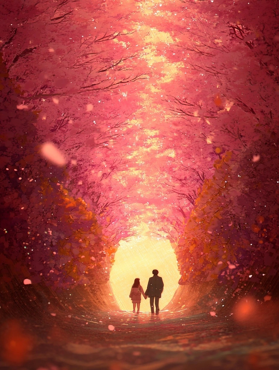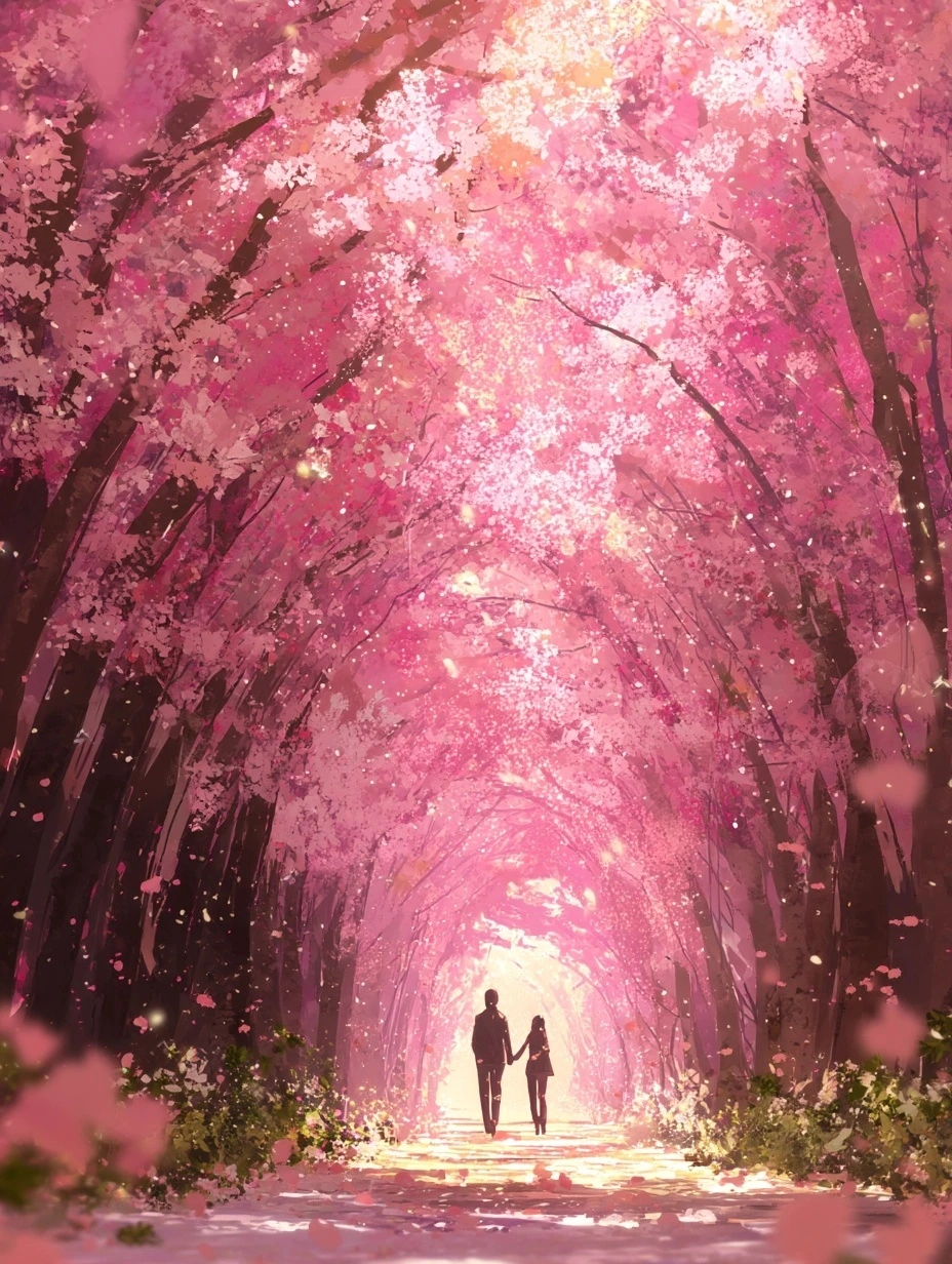 햇살이 부드럽게 내리던 어느 봄날, 우리는 벚꽃 터널 아래를 걸었다.