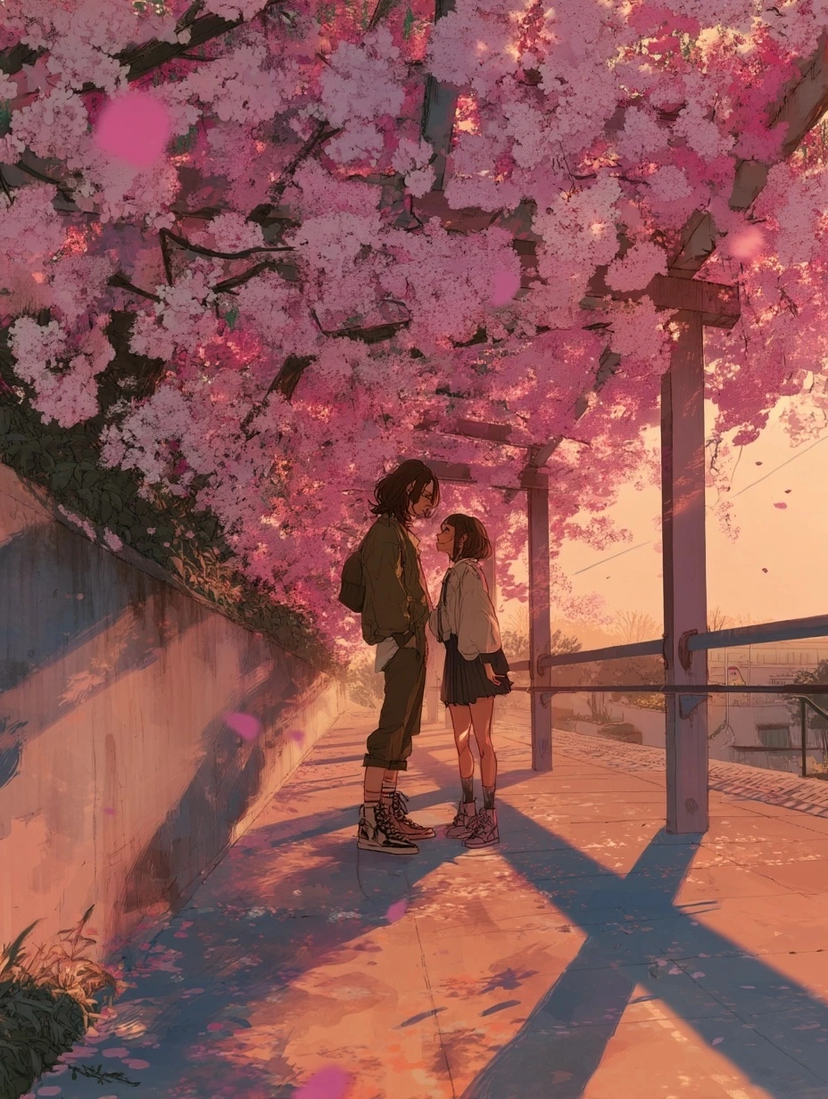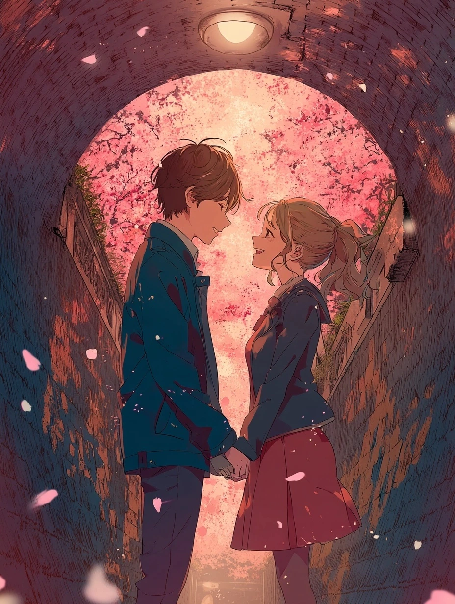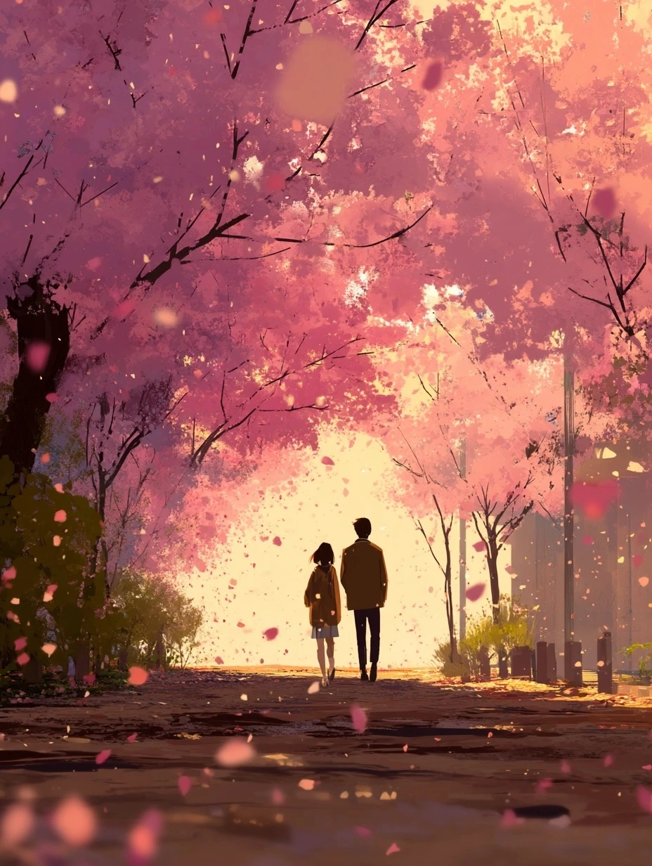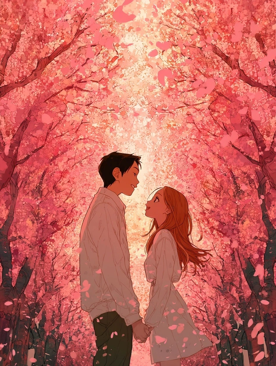 햇살이 부드럽게 내리던 어느 봄날, 우리는 벚꽃 터널 아래를 걸었다.