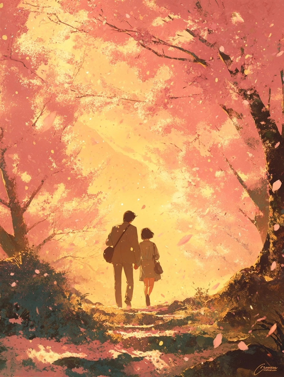 우리는 가끔 걸음을 멈춰, 꽃비 속에서 서로를 바라보았다.