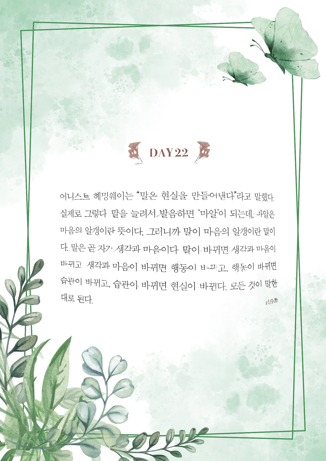 어니스트 헤밍웨이는 "말은 현실을 만들어낸다"라고 했습니다.