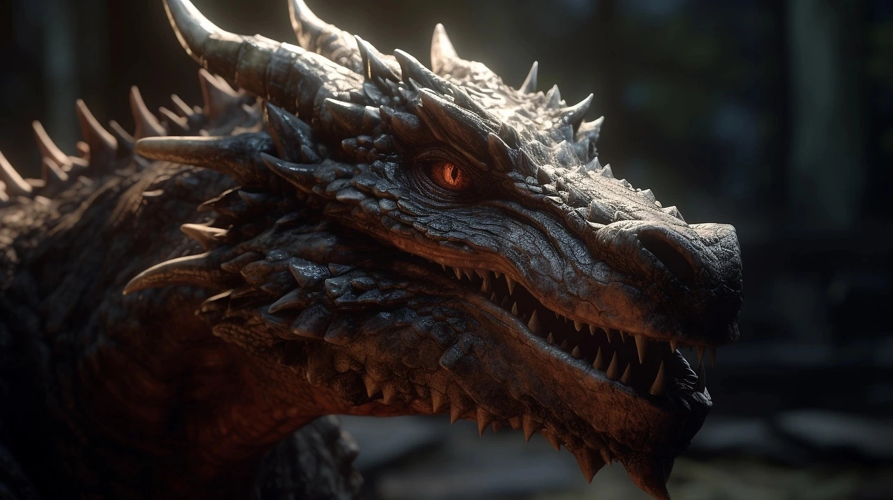 A majestic dragon, hyperrealistic, cinematic lighting --ar 16:9 --v 5
