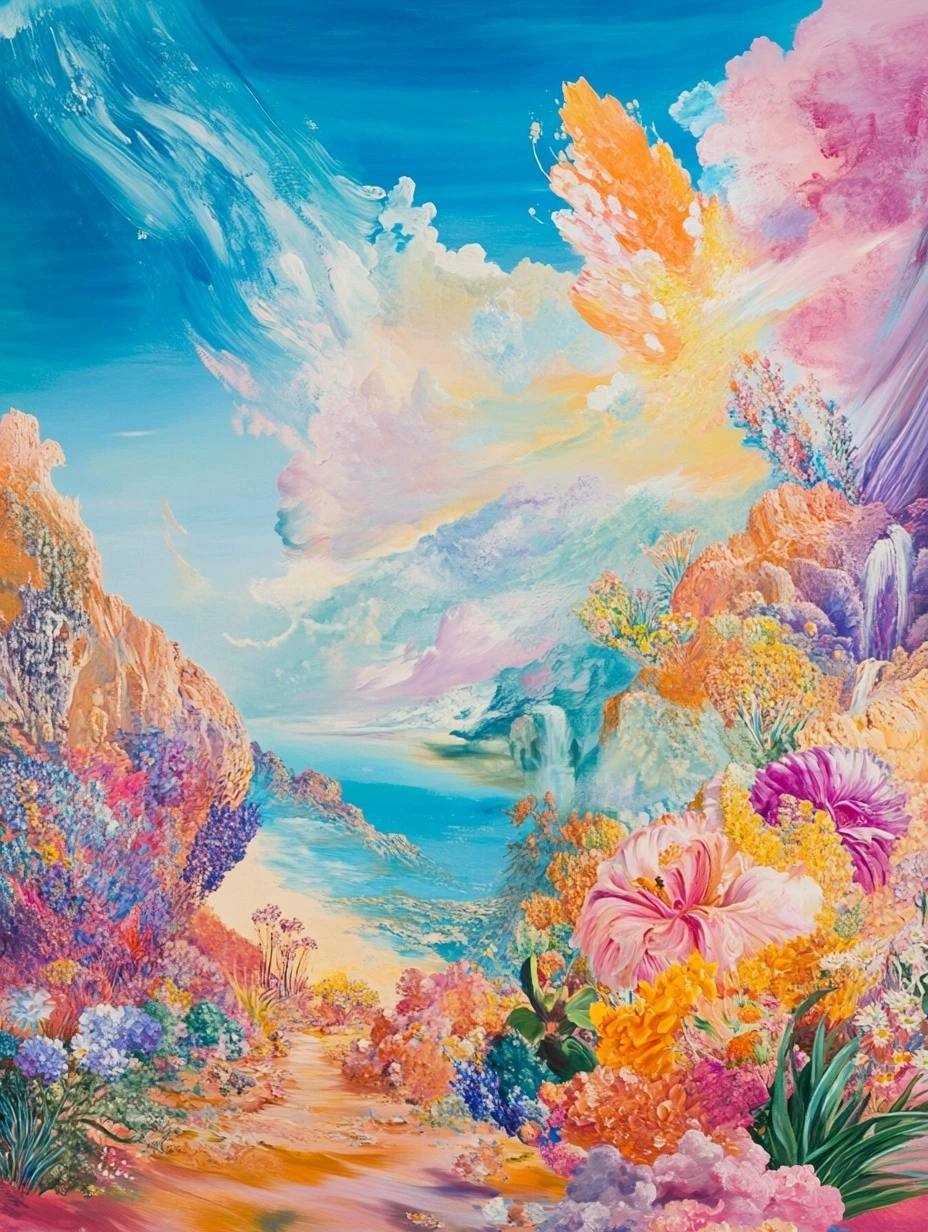 A dreamlike surrealistic landscape, Salvador Dali Style, vivid colors --ar 16:9