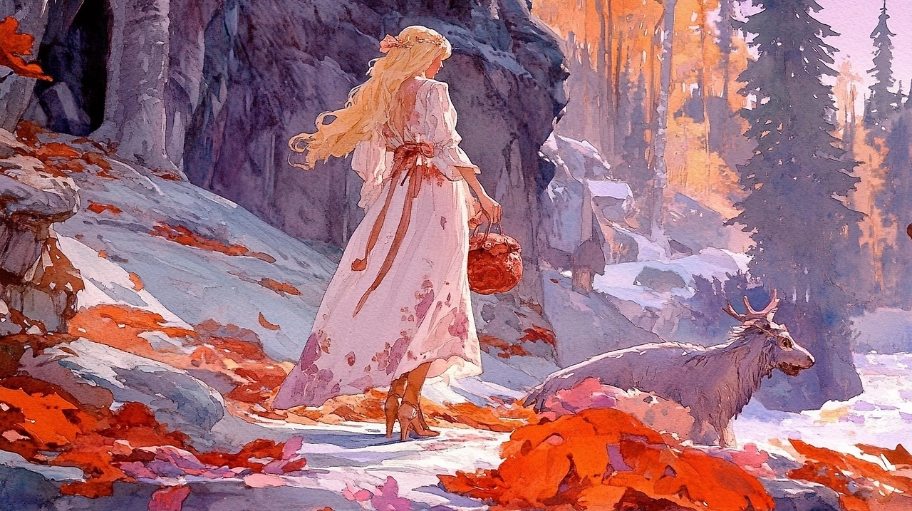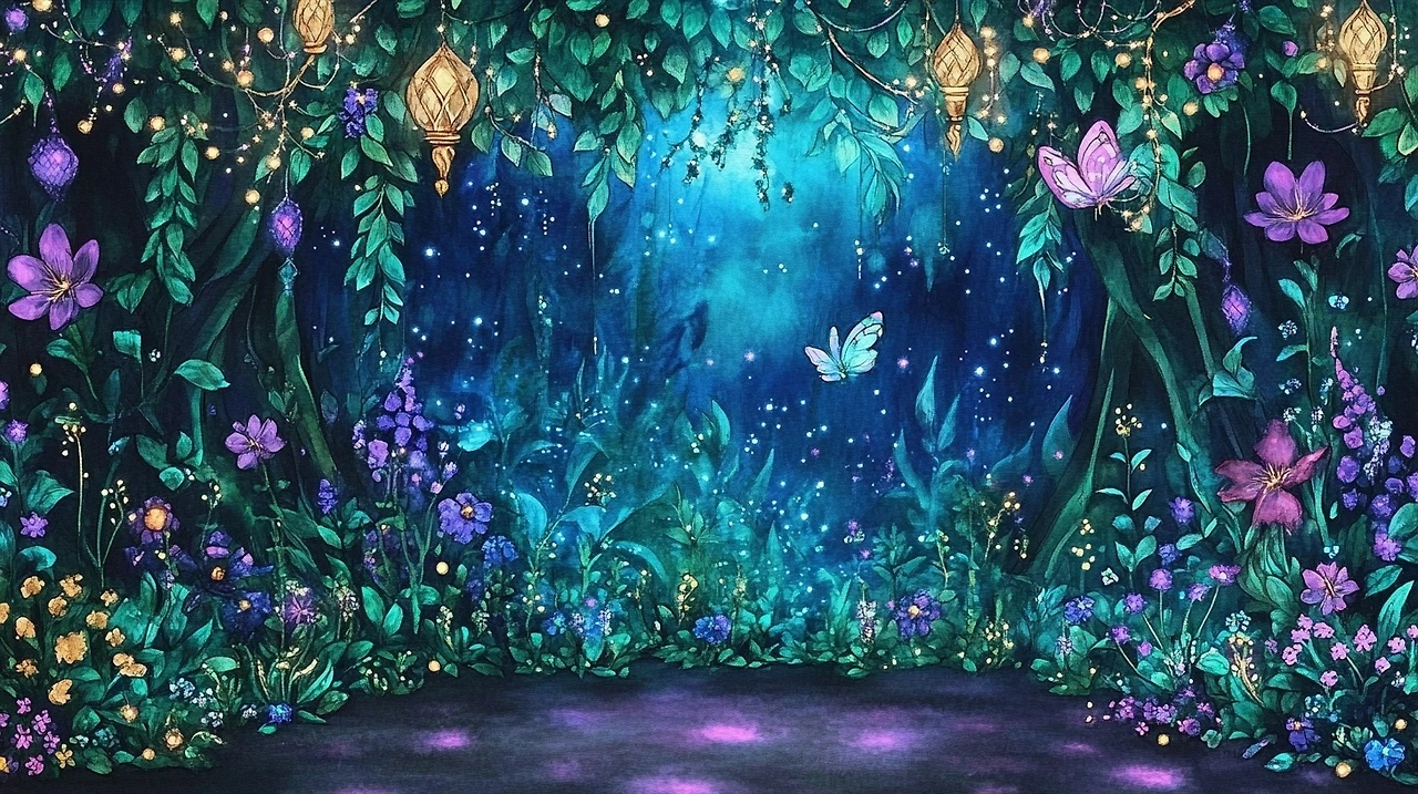A mystical forest, Art Nouveau style, watercolor painting --ar 16:9 --chaos 50