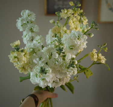 한 번은 정말 예쁜 색깔의 스토크를 보고 선물하고 싶은 지인이 떠 올랐다. 마트에 진열된 양으로는 부족해 꽃다발 바코드에 적힌 농부님께 전화를 걸어 직접 원예농장을 방문한 적이 있다. 싱싱하고 예쁜 꽃을 양껏 구입했다. 저렴한 가격에 사 가는 것도 죄송스러운데 넉넉하게 더 챙겨주시려는 마음 덕분에 우리 집도 지인의 집도 스토크 향기로 가득했더랬다.
