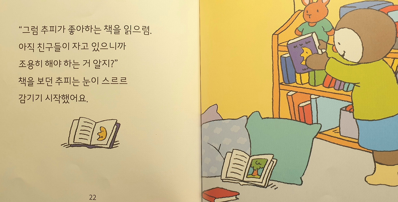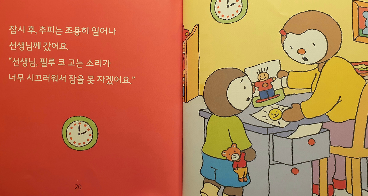 수면 위생 교육을 제대로 시켜주시는 추피의 유치원 선생님 (추피시리즈 '추피가 낮잠을 자요' 중에서)