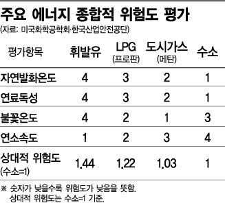 만약 고등학생 때 화학을 배운 기억이 있다면, 수소라고 다 똑같은 수소가 아님을 알 것이다. 수소라고 하더라도 중성자가 몇 개 이냐에 따라 전혀 다른 화학적 특징을 가지게 된다. 수소전기차에 사용되는 수소는 수소폭탄에 사용되는 중수소나 삼중수소가 아닌, 양성자가 단독으로 존재하는 수소분자이므로 일단 수소전기자동차와 수소폭탄의 연결고리는 끊어도 좋을 것 같다. 하지만 익히 알기를 수소는 폭발성이 강한 물질이라 배웠는데, 이 경우는 해당이 안 되는 것인가? 그건 아니다. 누출된 가스가 모여 구름을 형성하고 그곳에 불이 붙으면 화학적 폭발이 발생한다. 하지만 세상에서 가장 가벼운 기체인 수소는 빠르게 확산하여 구름이 형성되기 어렵고, 공기에 쉽게 희석되기에 현실적으로 어렵다는 이야기다. 그 말인 즉, 완벽한 밀실의 경우는 유출 시 폭발을 일으킬 수 있다. 다만, 터널이나 차고, 주차장과 같은 시설도 공기가 유입되도록 설계하기를 법으로 지정하고 있기에 현실적으로 그런 밀실은 고의적으로 만들지 않는 한 존재하지 않는다고 봐도 무방하다. 때문에 유출되었다 하더라도 배기시설에 의해 순식간에 날아가버린다는 것이다. 미국화학공학회와 한국산업안전공단의 말에 의하면 공기보다 가벼운 수소보다 아래로 깔리는 CNG가 더 위험하다고 일축한다. 또한 산업통상자원부는 이에 대해 “수소는 석유화학, 정유, 반도체, 식품 등 산업현장에서 수십 년 동안 사용해온 가스로, 이미 안전관리 노하우가 축적된 분야”라고 밝혔다. 때문에 수소의 폭발 가능성을 충분히 제어할 수 있다고 주장한다. 그들의 발표에 따르면 휘발유> LPG> 도시가스> 수소 순으로 위험하며 세간의 인식과는 다르게 수소가 가장 안전한 에너지라 봐도 무방하다.