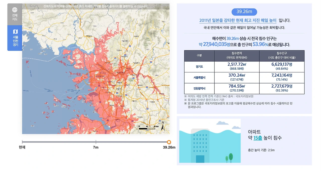 해양환경공단에 따르면, 2100년에는 서울/경기/인천의 꽤 많은 부분이 물에 잠기고 없을 것이다. 장기적인 시점에서 본다면 해당 지역들의 철도/공항 등의 인프라는 무효할 것이라 예측해볼 수 있다.