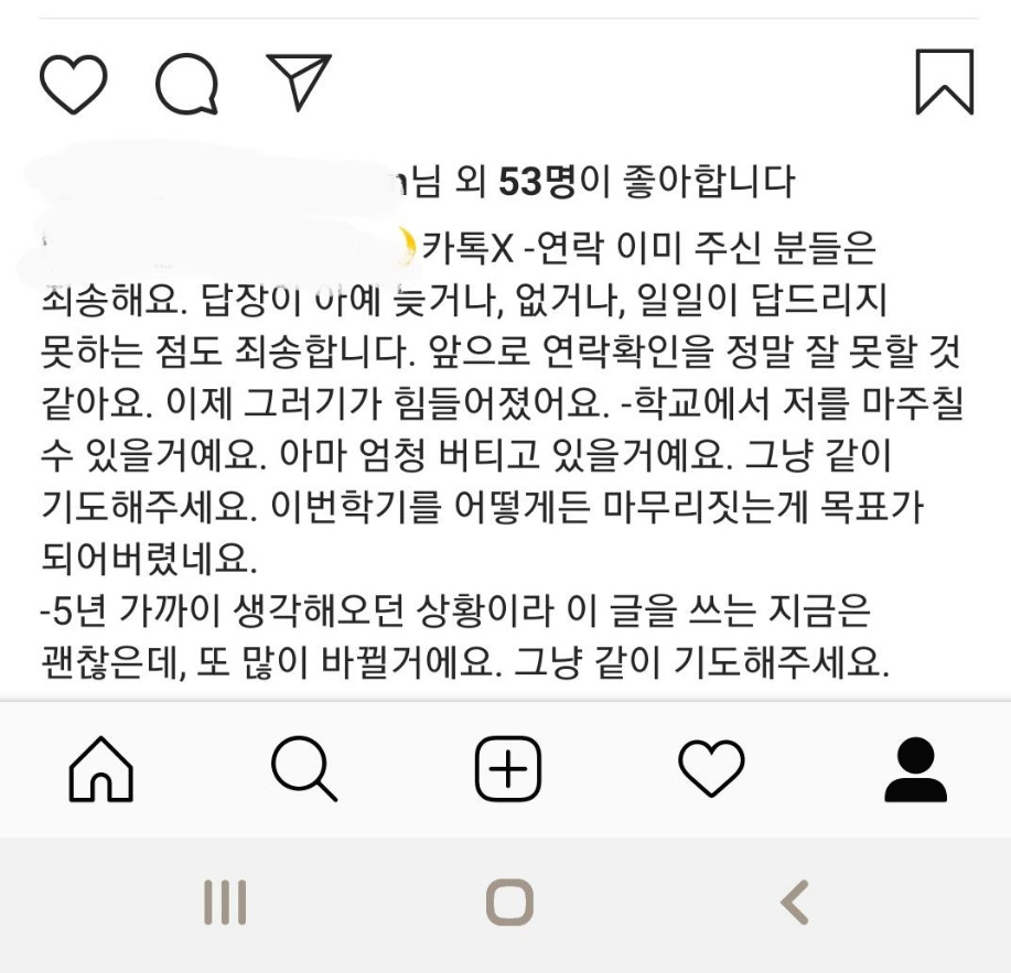 일일이 지인들에게 상황을 설명하기엔 힘이 부쳐 인스타로 힘든 상황을 전달했었다.