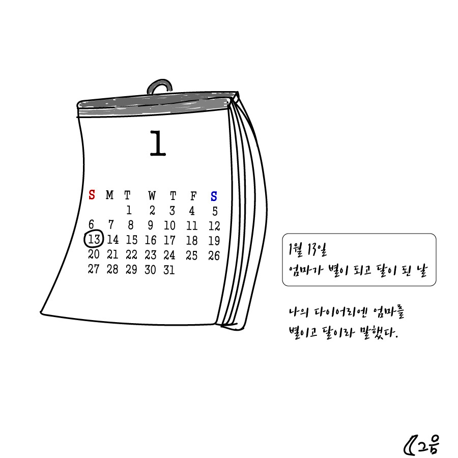 그날은, 그러니까 엄마가 돌아가신 날은 내 생일이 4일 지난 뒤였다. 내가 왜 날짜를 이렇게 기억하는지는 모르겠지만 나는 다들 정신없는 와중에 생일이어서 축하해달란 말도 꺼내지 않았었다. 엄마는 내 생일이 며칠 전이었다는 사실을 알고는 있었을까. 이걸로 서운했다고 하는 건 떼쓰는 것밖에 되지 않을 것 같기도 하다.