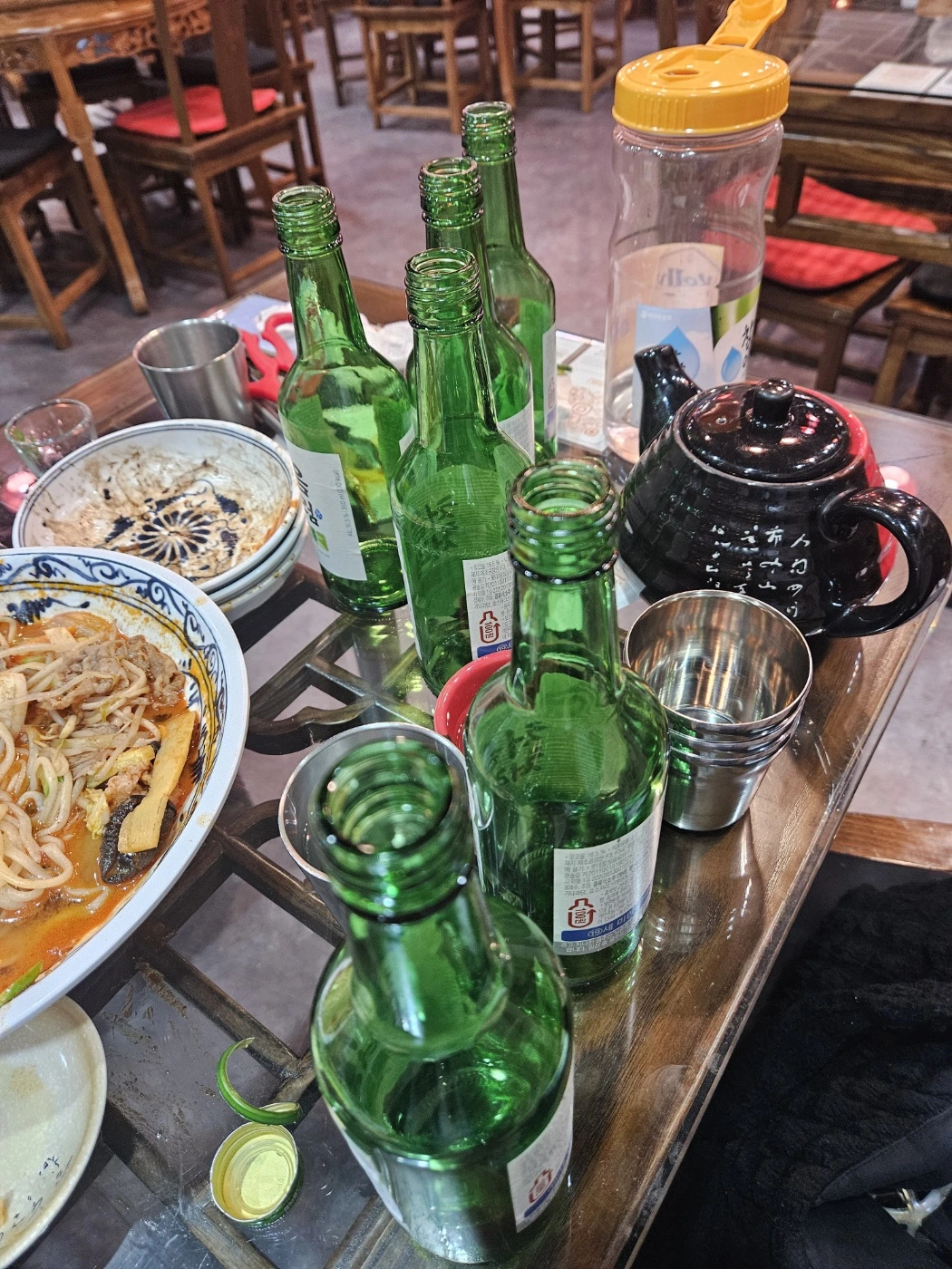 '쏘주'는 북적북적한 꼼장어 집에서 한 잔
