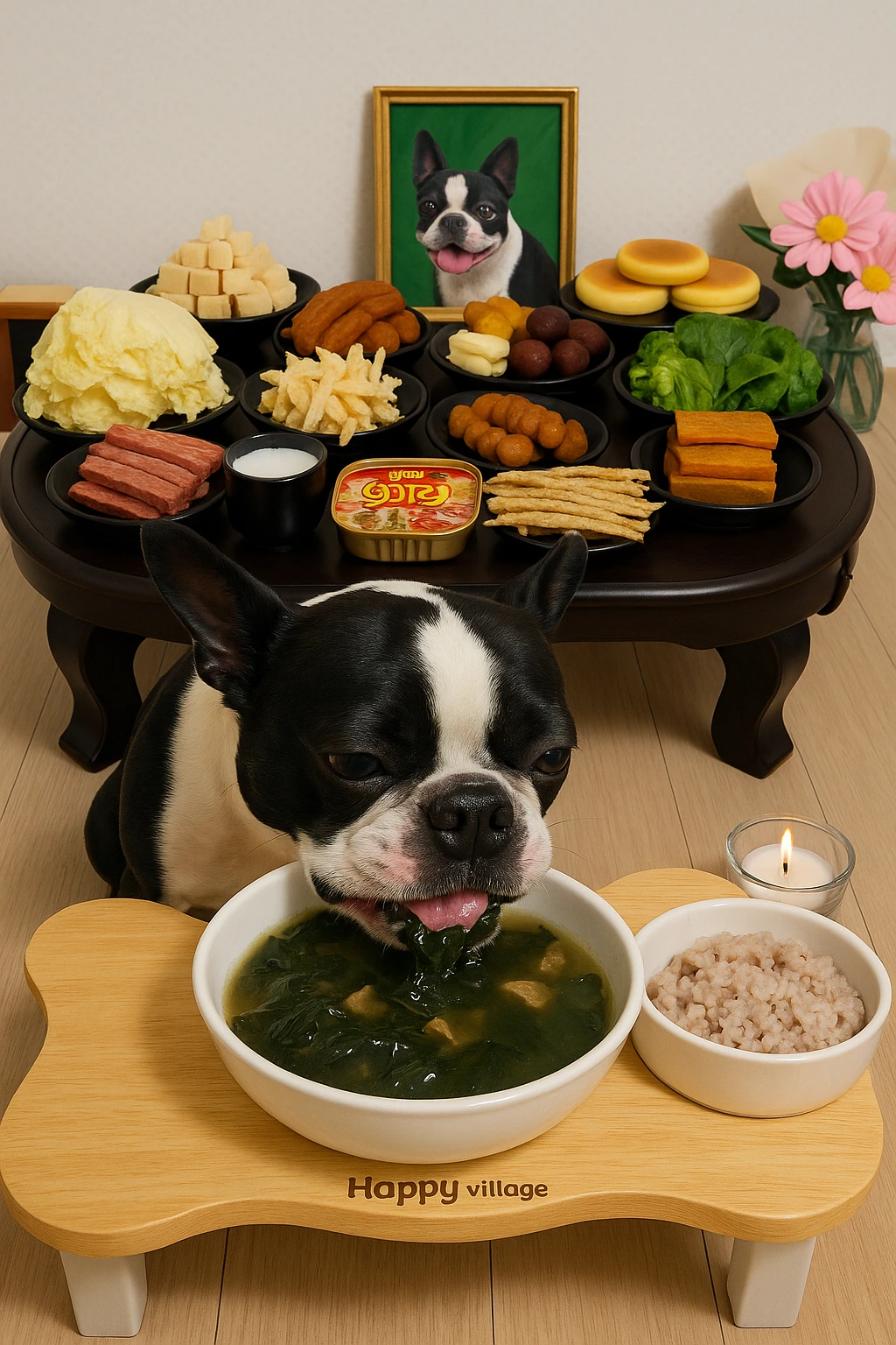 너랑 마주 앉아 맛있는 걸 나눠 먹던 게 제일 그리워. 내가 쩝쩝 소리를 내면 너는 드르렁 코를 골며 자다가도 벌떡 일어나 달려왔지. 침을 뚝뚝 흘리며 불쌍한 표정을 짓는 널 보면, 뭐든 안 줄 수가 없었어.