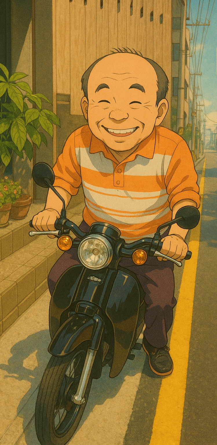 아빠는 평생 돈을 벌었고, 그 돈은 단 한 번도 자기 자신을 위해 쓰지 않았다. 낡아서 너덜너덜해진 러닝셔츠, 기워 입은 옷과 양말. 그 모든 절약의 흔적 속에서도 늘 꿋꿋했던 사람. 절약왕 아빠에게 새 오토바이는 65년 인생 첫 보너스 같은 선물이었다.