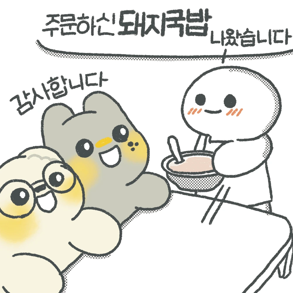 돼지국밥을 정기적으로 수혈을 하고 있어요