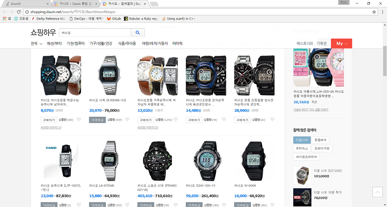 첫 번째로 다음에서 쿼츠 시계로 유명한 카시오(Casio)를 검색해 보았다.