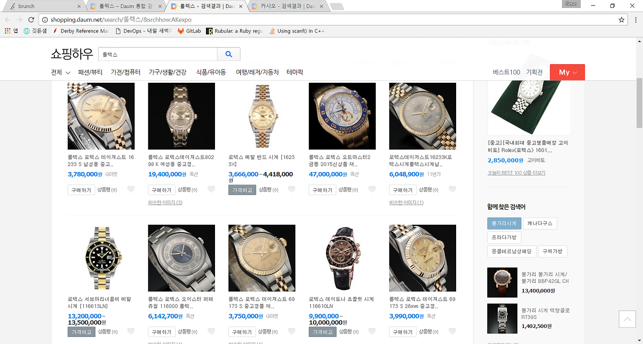 두 번째로 기계식 시계에서 가장 유명한 브랜드인 롤렉스(Rolex)를 검색해보았다.