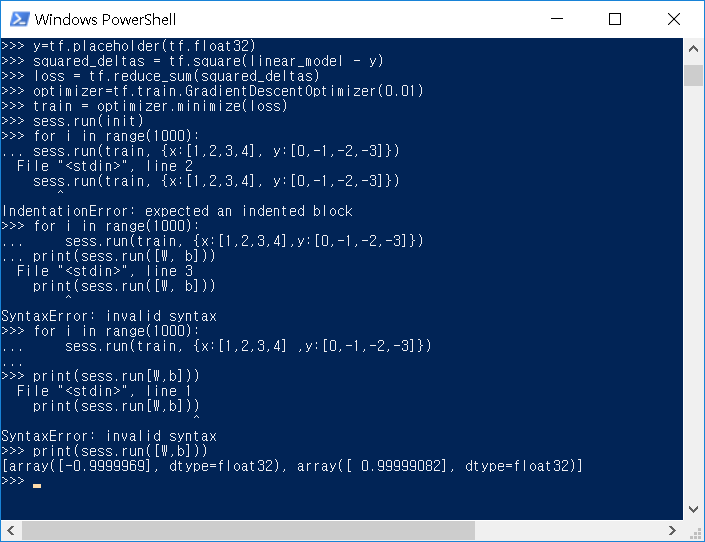 여기까지가 텐서플로우의 기본이라고 한다.