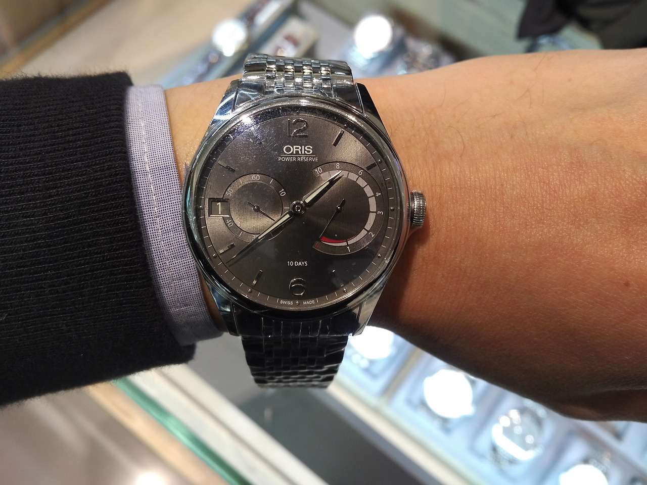 이 무브먼트는 오리스에서 자체 개발했는데, 무려 10일의 파워리저브를 가졌다.