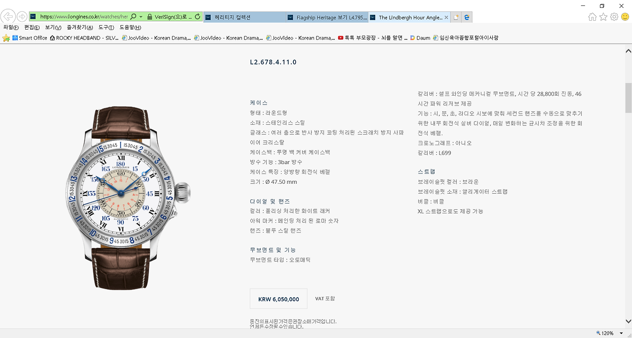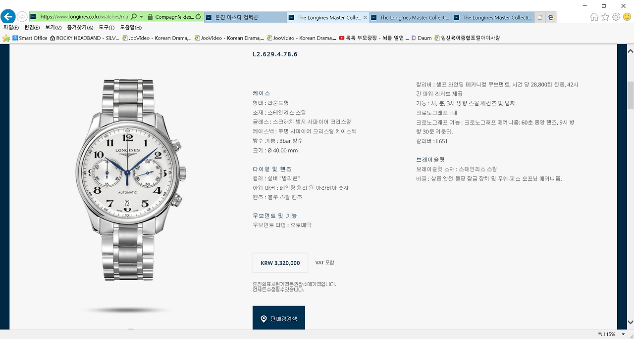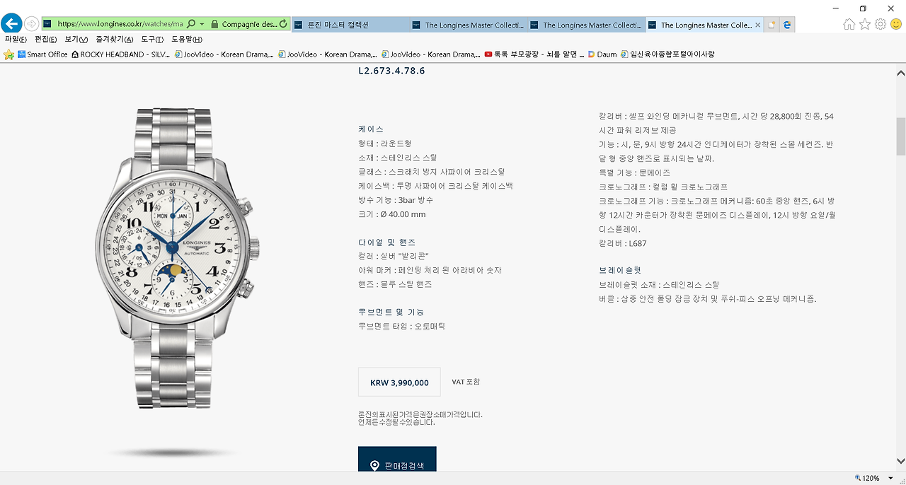 다만 가격이 홈페이지 기준 132만 원이나 올라가고 (286만 원), 크로노그래프 모델답게 두께와 무게가 좀 나갈 것으로 보인다.