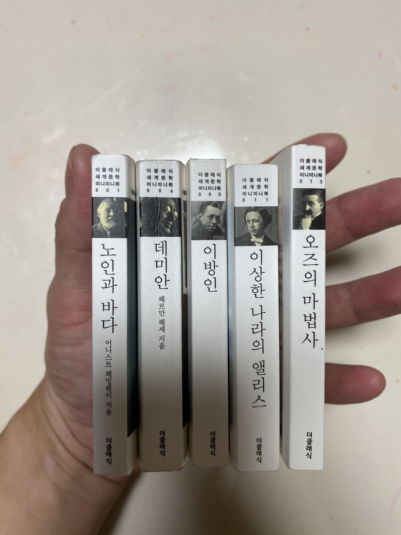 약 4달 전, 날이 막 더워지기 시작할 때쯤에 볼일이 있어서 한 대형 서점을 찾아갔었다. 그러다 ‘더 클래식’이란 출판사에서 ‘세계 문학 미니미니북’이라는 이름의 시리즈로 세계 문학 작품 몇 점을 아주 콤팩트한 크기의 책으로 출시한 걸 발견했다. 미니미니북이라는 이름에 어울리게 책 한 권이 내 손바닥(손 전체가 아니라 손가락을 뺀, 정말 손바닥만 한) 정도의 크기였다. 당시 전시되어 있던 책은 노인과 바다와 이방인, 이상한 나라의 앨리스, 인간실격, 사람은 무엇으로 사는가 정도였던 것으로 기억한다.