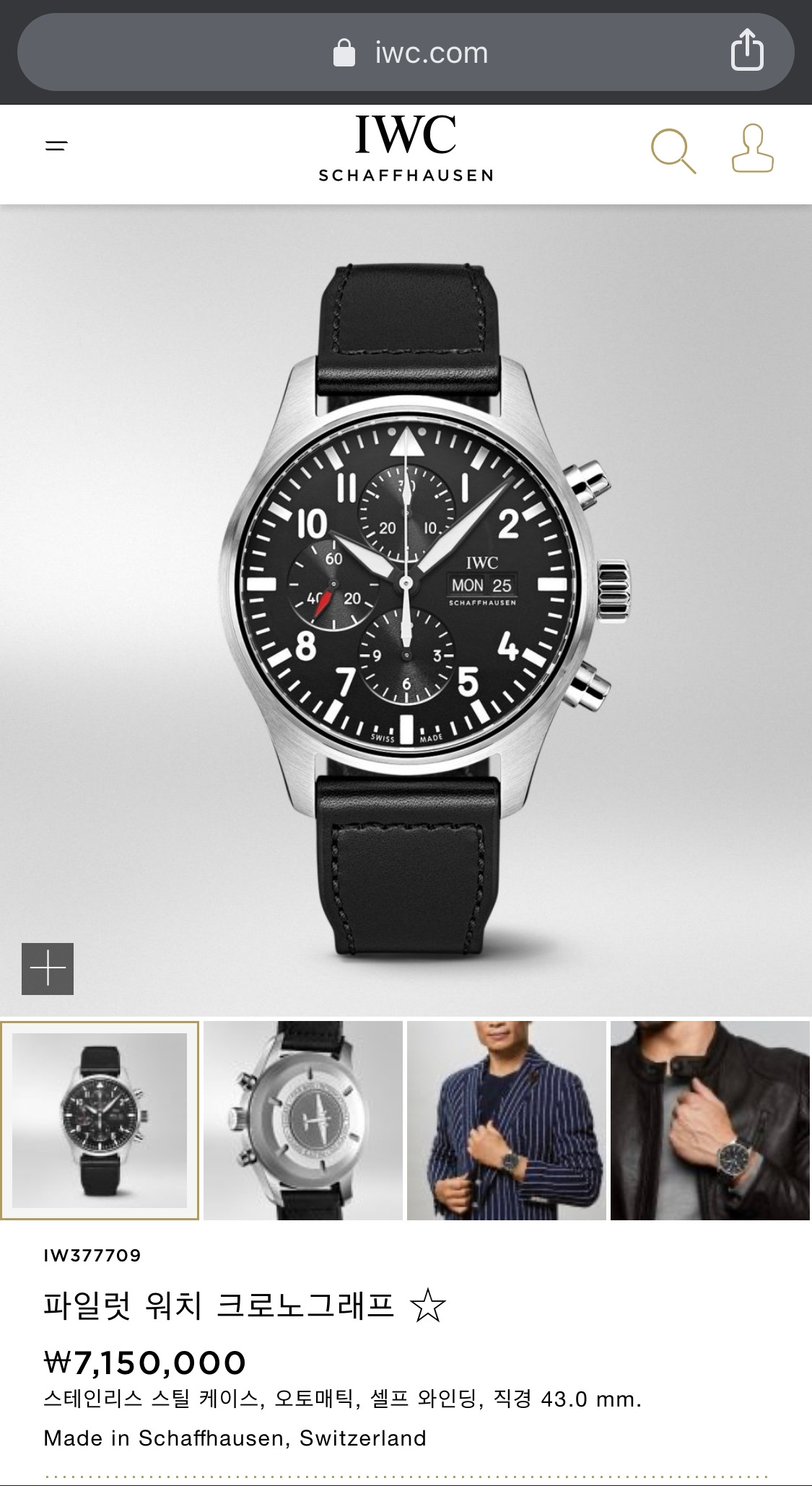 가격은 포스팅하는 2020년 1월 10일 기준 715만 원이다. 그런데 IWC는 중고 가격 방어를 잘 못하는 편이라서 중고 장터를 잘 찾아보면 이보다 훨씬 저렴한 가격에 경험할 수 있다. 그러니 총알은 부족한데 IWC를 꼭 한 번 차보고 싶다면 flywatch나 중고나라, 타임포럼 같은 곳을 잘 살펴보길 바란다. IWC는 인기 브랜드라서 중고로 활발하게 유통되는 편이다. 조금만 참을성을 갖고 기다리면 최신 모델부터 이미 단종된 모델까지 거의 전 모델이 한 번씩은 중고 장터에 등장한다.
