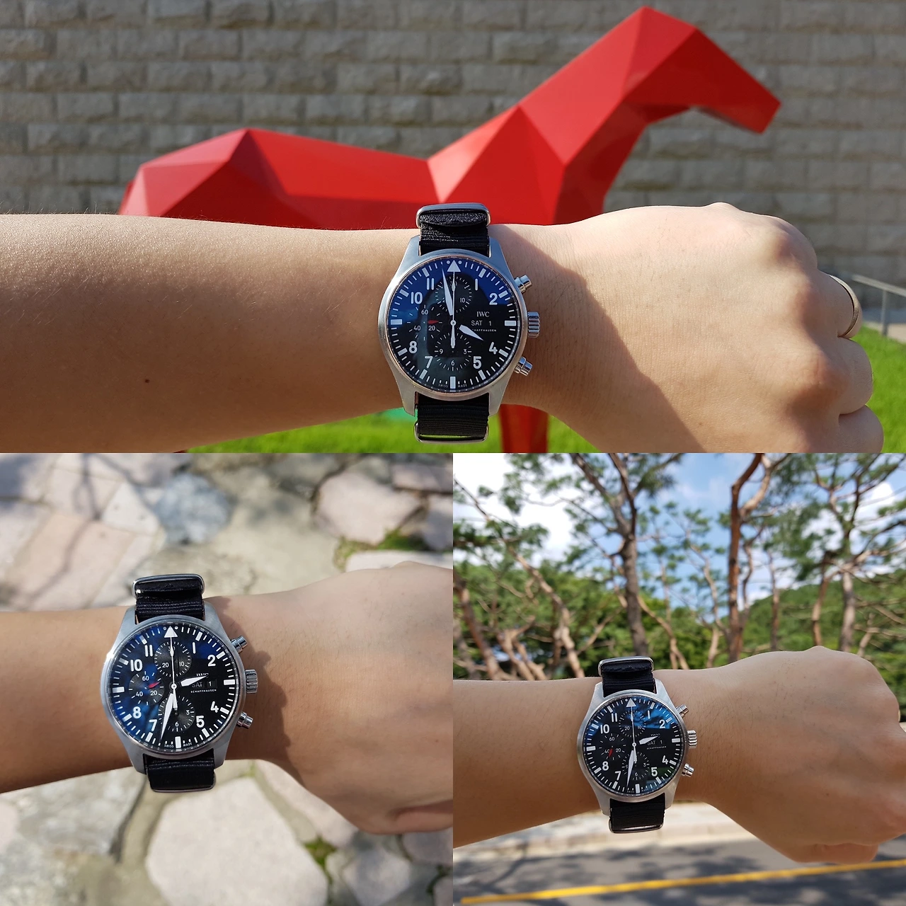 시계는 아주 마음에 들었다. 특히 여름에 반 소매를 입어 훤히 드러난 손목에 적당히 큰 파일럿 시계를 차니 내가 봐도 멋져 보였다. 그리고 보통 ‘시계가 줄질을 잘 받는다’고 말하는데 이런저런 스트랩이 다 잘 어울려서 그날 기분에 따라 시계줄을 바꿔서 차고 다녔다.