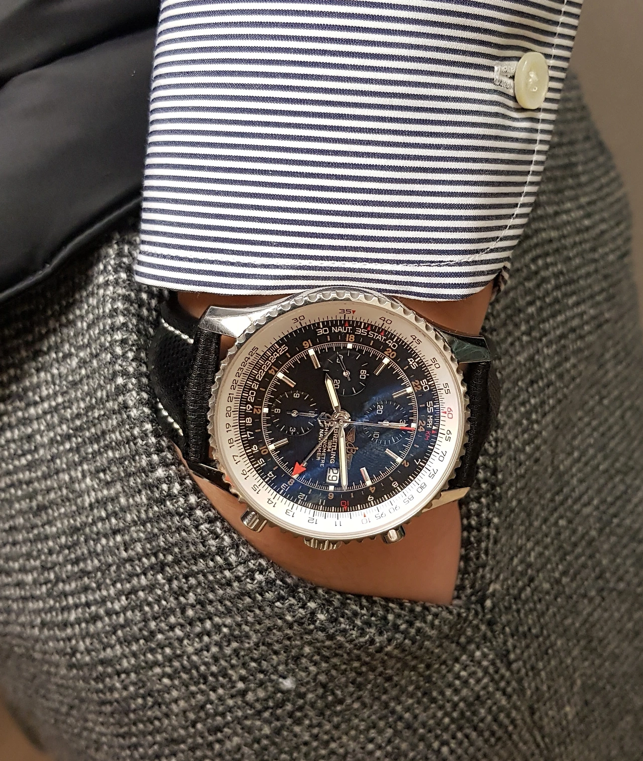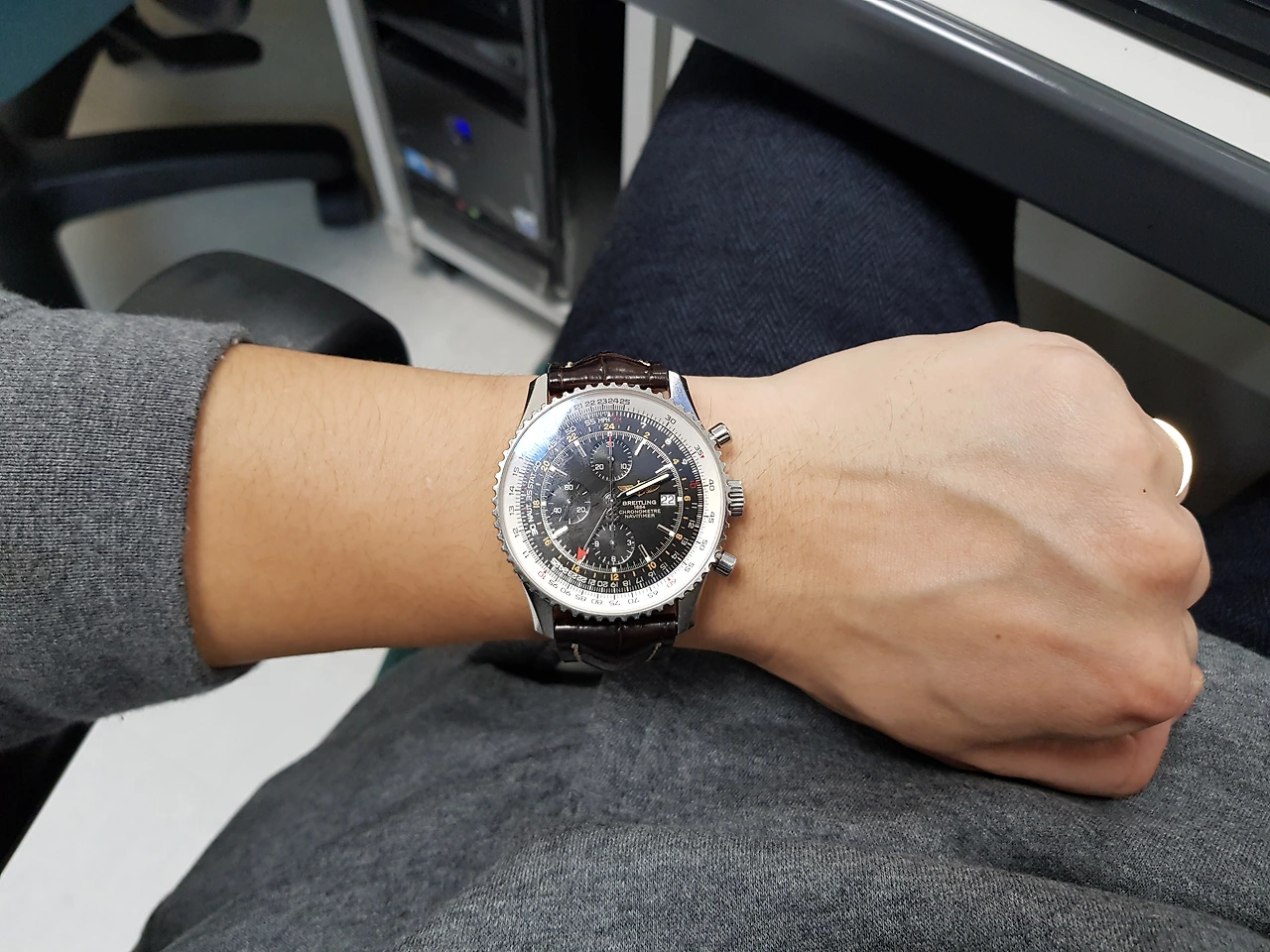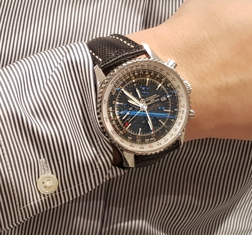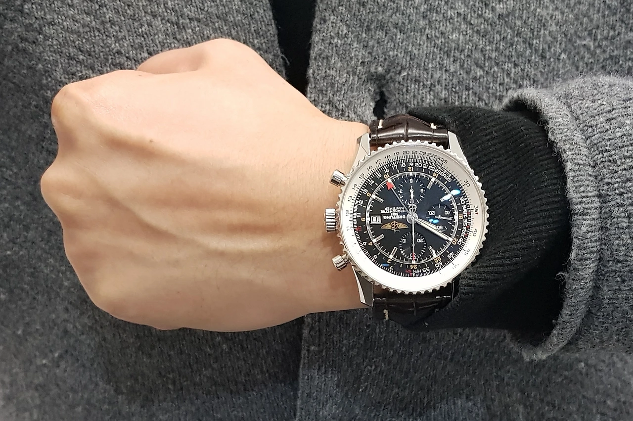 구구절절 말이 길었는데 GMT 기능이 꼭 필요하거나 조금 저렴하게 네비타이머 디자인을 맛보고 싶을 때 들이면 좋은 시계다. 위 모델보다 월드 모델이 몇 백만 원 정도 저렴하다.