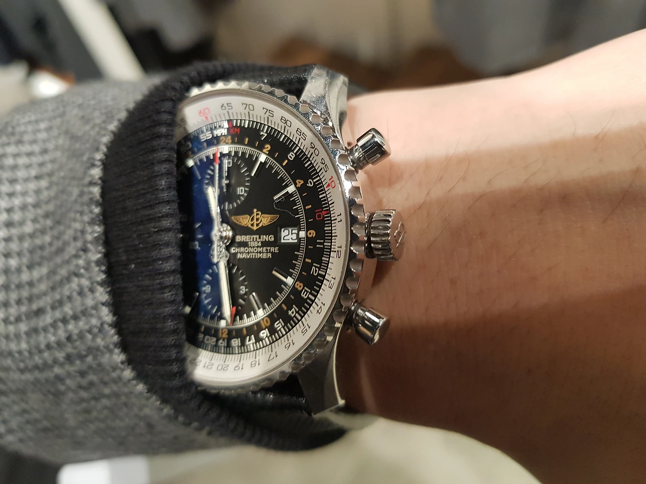 요즘에도 가끔씩 네비타이머 다이얼이 생각나서 중고 마켓에 올라오면 한 번씩 들여다보곤 한다. 좀 작은 버전으로 다시 한 번 차보고 싶다.