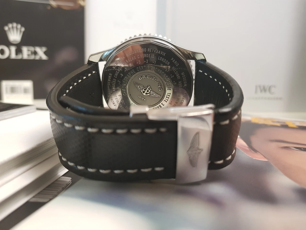 네비타이머 월드라는 이름에 맞게 뒷면에는 세계 주요 도시의 시간대가 표시돼있다. 실용성을 더해주는 이런 부분도 매력포인트다.