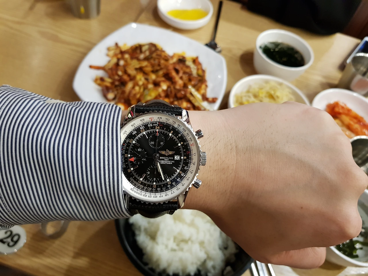 이건 브라이틀링의 장점이라고 해야 할 것 같다. 크고 무거운 시계였지만 줄을 꺾어서 고정하는 독특한 방식의 브라이틀링 디버클을 장착하면 착용감이 그럭저럭 괜찮았다.