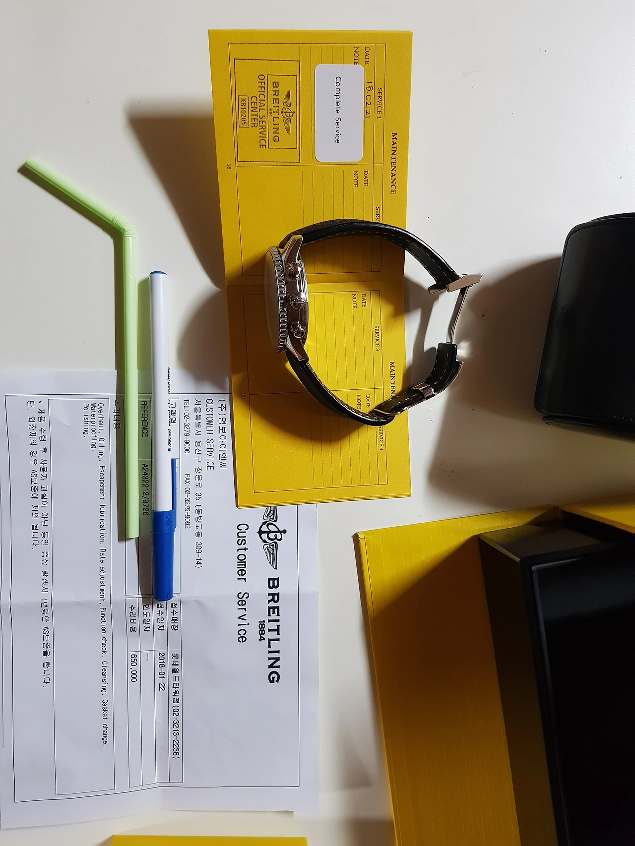 중고로 구입하고 나서 무려 65만 원을 들여 브라이틀링 매장에서 정식 오버홀도 받았다. 기간은 좀 오래 걸렸지만 오버홀 진행 과정 전반에 걸쳐 아주 친절하게 안내를 받아 기분이 좋았던 기억이 난다. 덕분에 브라이틀링의 고객 서비스는 상당히 괜찮은 기억으로 남았다.