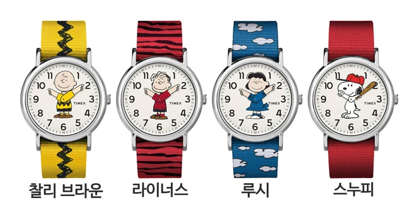 이 시계 이후에도 지속적으로 타이멕스와 피너츠의 새로운 컬래버레이션 시계가 나온 걸 보면 이 콜라보가 잘 팔리나 보다. 피너츠의 캐릭터들이 원체 매력이 넘치다 보니 다이얼에 제대로 옮겨놓기만 해도 절반은 먹고 들어갈 것 같다. 내가 살 때는 아래와 같이 4가지 버전이 있었다.