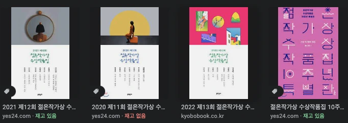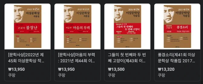그리고 아래는 이상 문학상 작품집 표지다. 언뜻 보면 같은 책 네 권을 늘어놓은 것이라고 착각할 수도 있겠다.