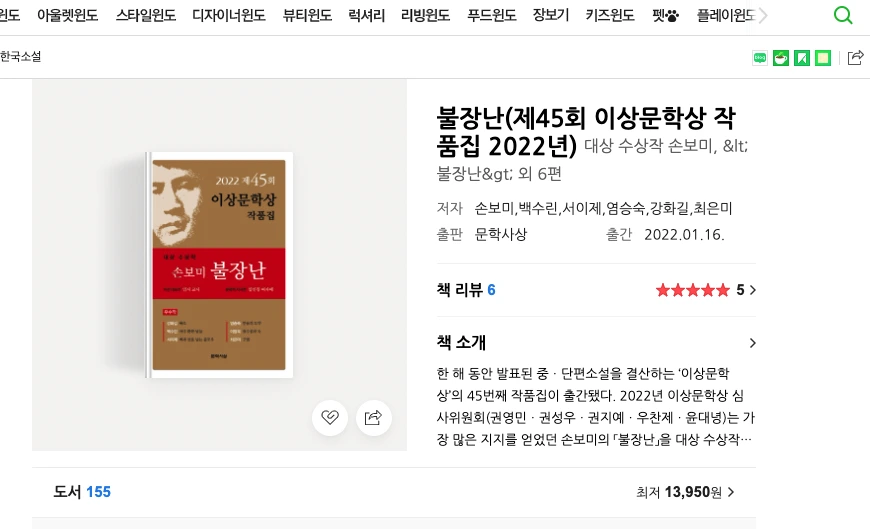 수상 작가가 절필을 선언하고 그 소식이 여러 메이저 언론에 크게 보도될 정도로 강력한 타격을 입었던 문학상이었는데 역설적으로 그 논란 때문에 이 책으로 손이 갔다. 논란을 접하기 전에는 큰 관심이 없었는데 서점에서 이 책을 보는 순간 그때의 논란이 생각나서 충동적으로 집어 들어 계산하고 가져왔다.