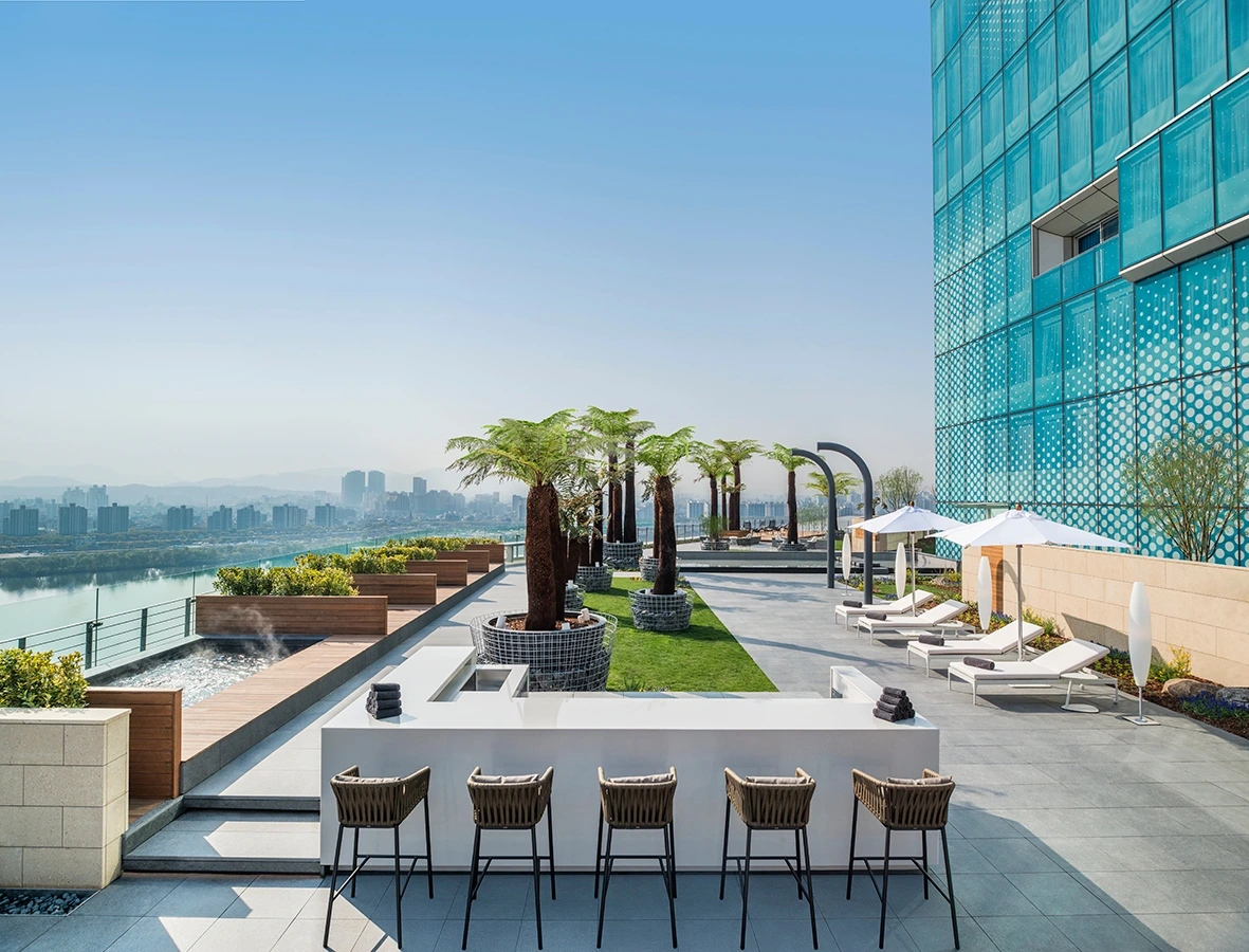 비스타 워커힐 서울 호텔에 묵으면 투숙객에 한해 개방하는 스카이 야드에 갈 수 있다. 호텔 4층에 위치한 야외 공간으로 한강을 조망할 수 있는 크고 널찍하고 이국적인 베란다라고 생각하면 된다. 서울에서 나고 자란 서울 토박이라서 수많은 한강 야경을 봐왔는데 그중에서 손꼽을 만한 곳이었다. 비스타 워커힐 서울에 묵는다면 꼭 한 번 가볼 만한 곳이다.