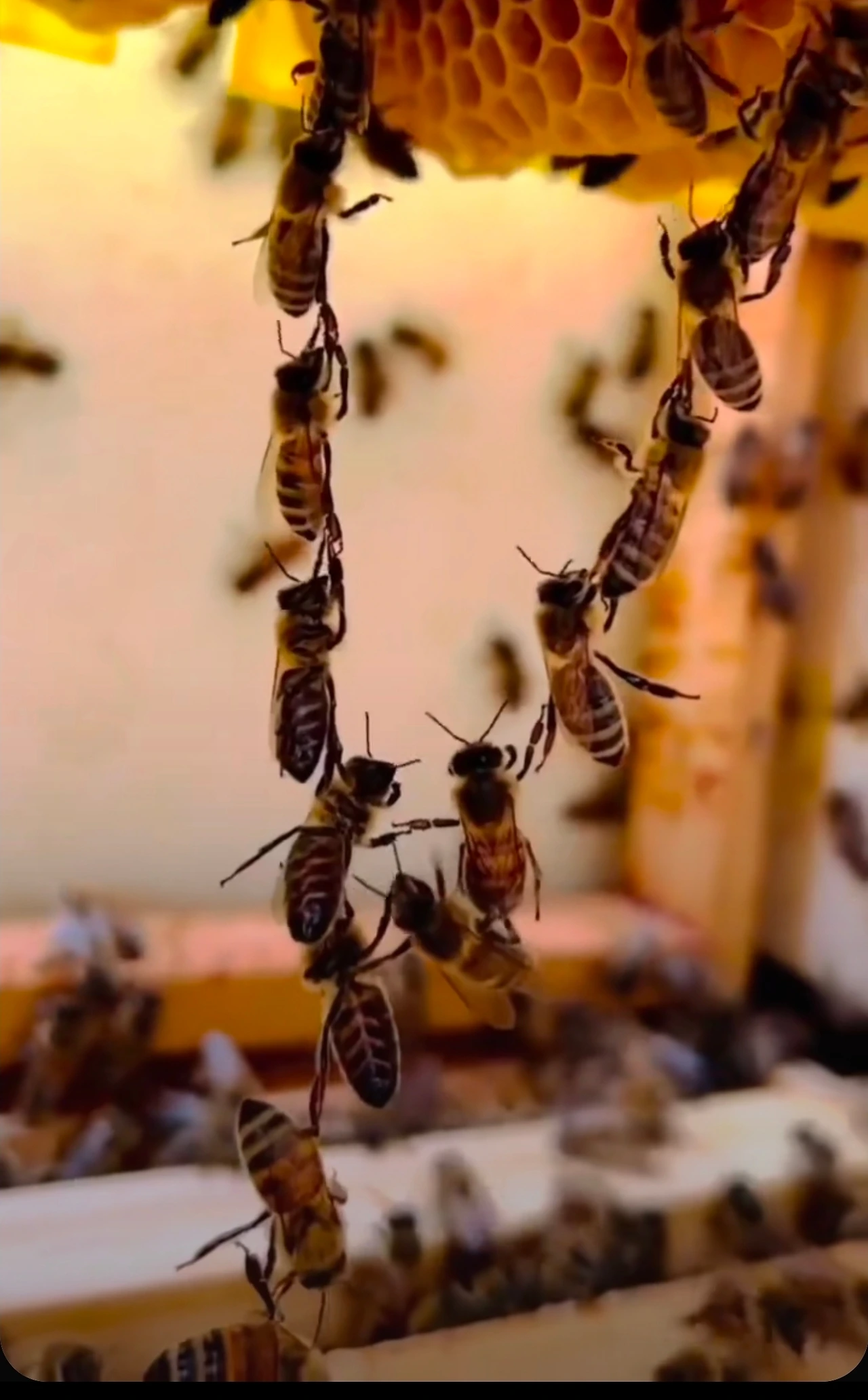 [3] 사슬 대형 (Festooning): 건축벌들이 서로 얽혀 매달리는 행동. 이는 벌집의 수평과 수직을 잡는 살아있는 '수준기' 역할을 합니다.