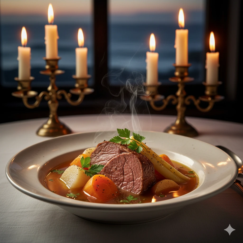 마침내 테이블 위에 김이 모락모락 나는 포토푀가 놓였다. 화려한 기교나 비싼 향신료 대신, 오후 3시부터 쏟아부은 정직함만이 담긴 그릇이었다. 노신사는 떨리는 손으로 스푼을 들어 국물을 한 입 머금었다.