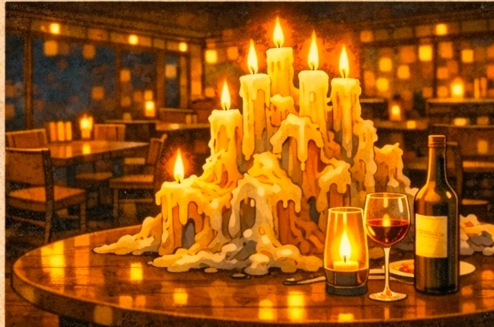 태풍 사장이 비장한 표정으로 식당 한가운데 놓인 ‘그것’을 가리켰다. 테이블 정중앙, 족히 수십 킬로그램은 되어 보이는 거대한 촛농의 산. 수개월, 아니 수년 동안 수천 개의 촛불이 녹아내리며 겹겹이 쌓인 그 형상은 흡사 가우디가 설계한 성당 같기도 하고, 바다 밑바닥에서 건져 올린 기괴한 산호초 같기도 했다. 우리는 그걸 ‘촛불 성’이라 불렀다.